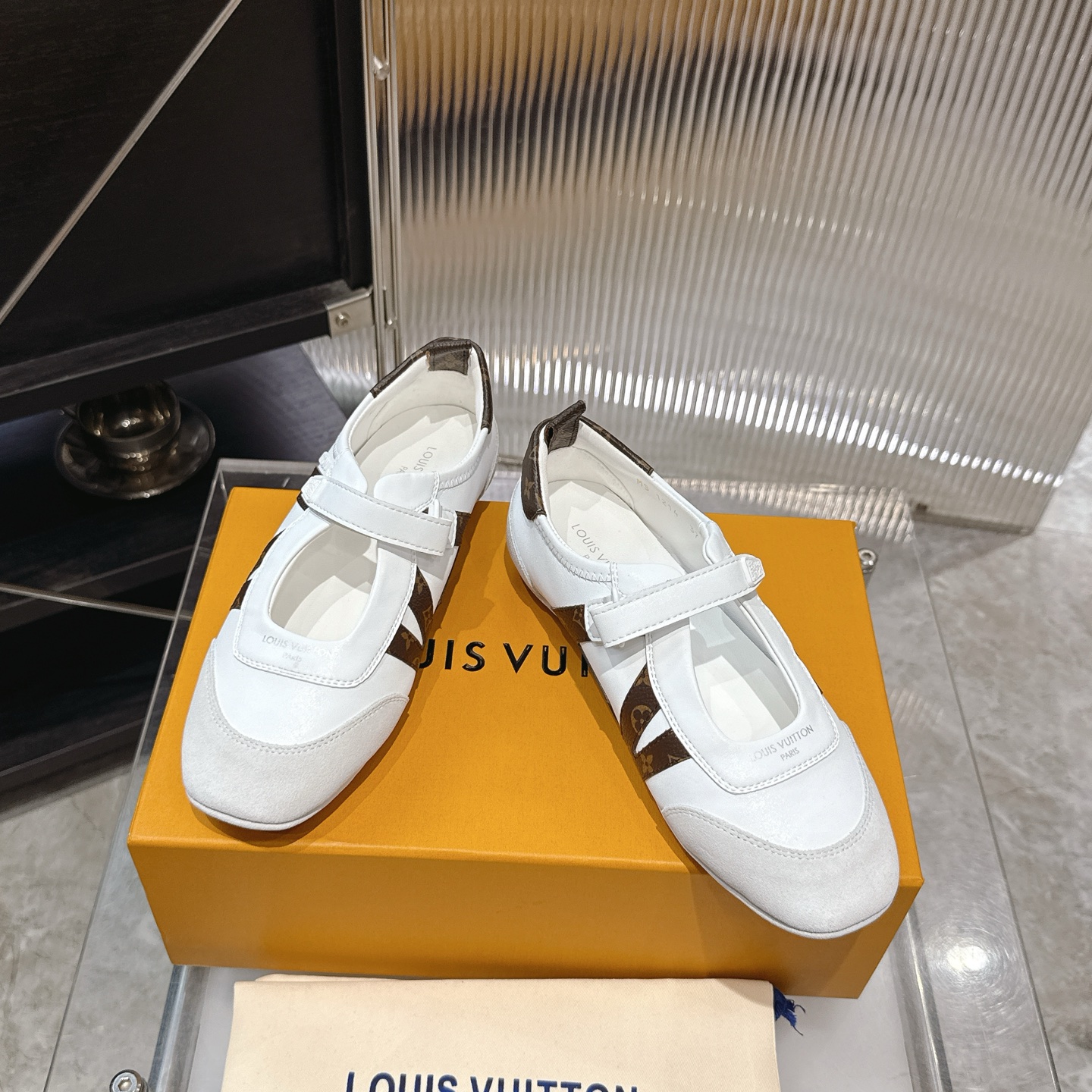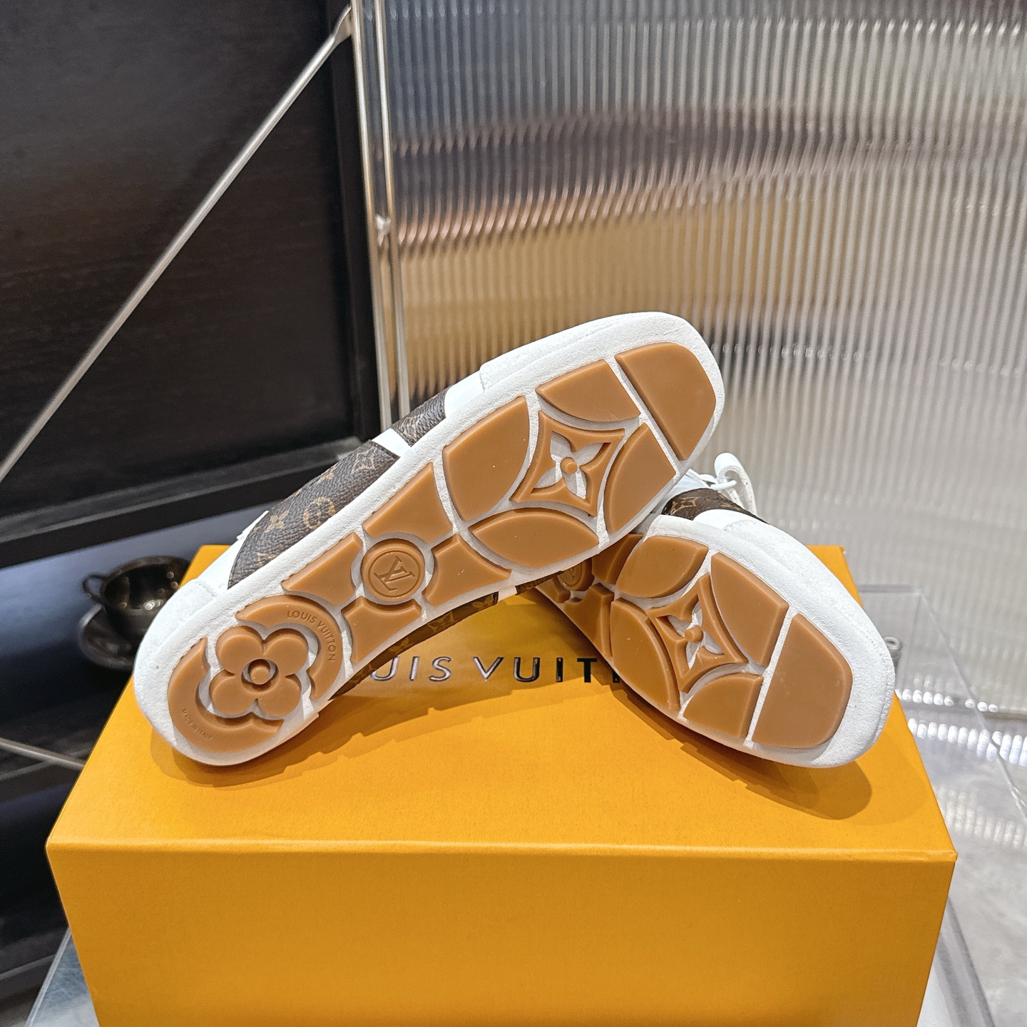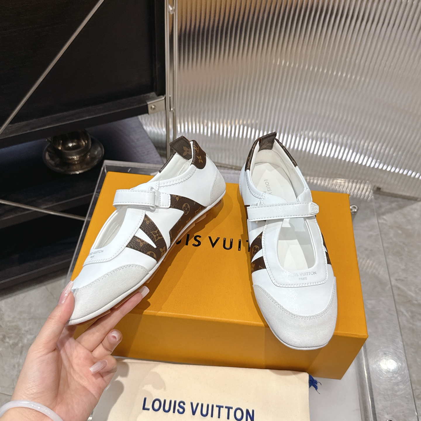 这款鞋子是AAAAA 1:1 质量 (非常棒). 使用了和原版一模一样的材料. 商标部分也保持了和路易威登/Louis Vuitton一样. 图片拍摄是实物鞋子拍摄, 您所收到的实物保证和我们图片一模一样.