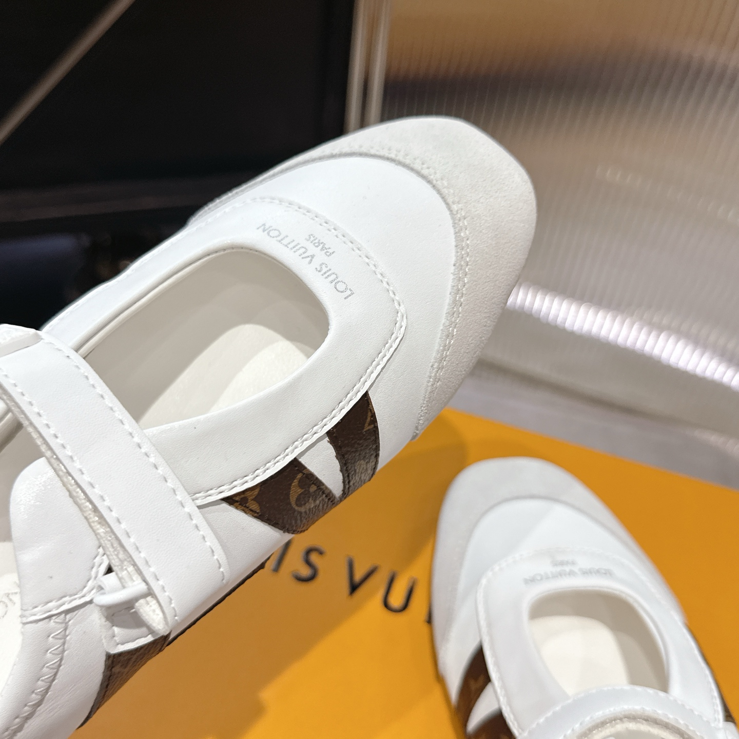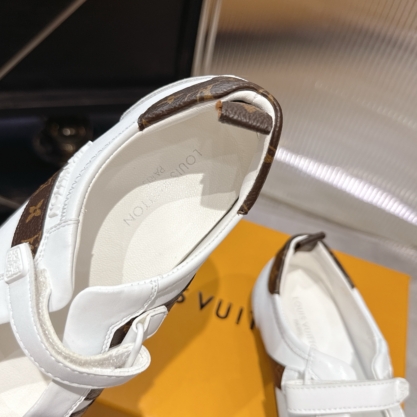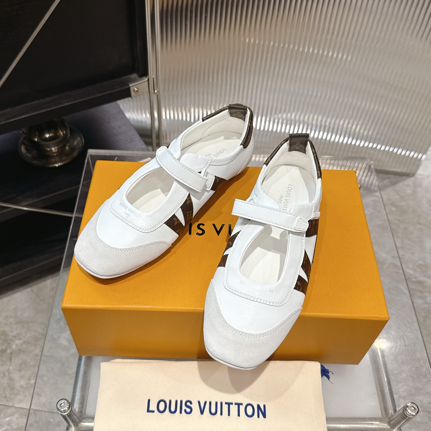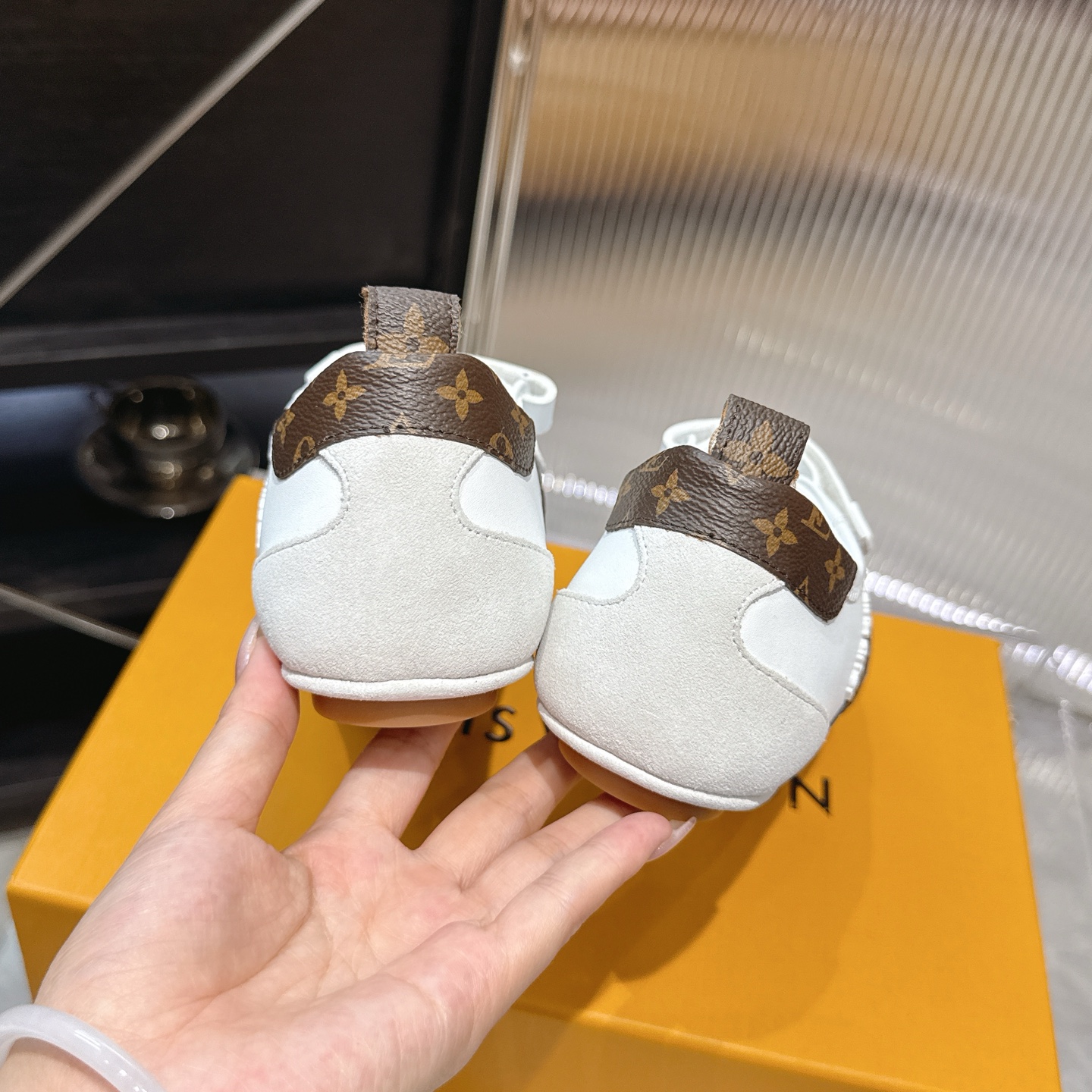 这款鞋子是AAAAA 1:1 质量 (非常棒). 使用了和原版一模一样的材料. 商标部分也保持了和路易威登/Louis Vuitton一样. 图片拍摄是实物鞋子拍摄, 您所收到的实物保证和我们图片一模一样.