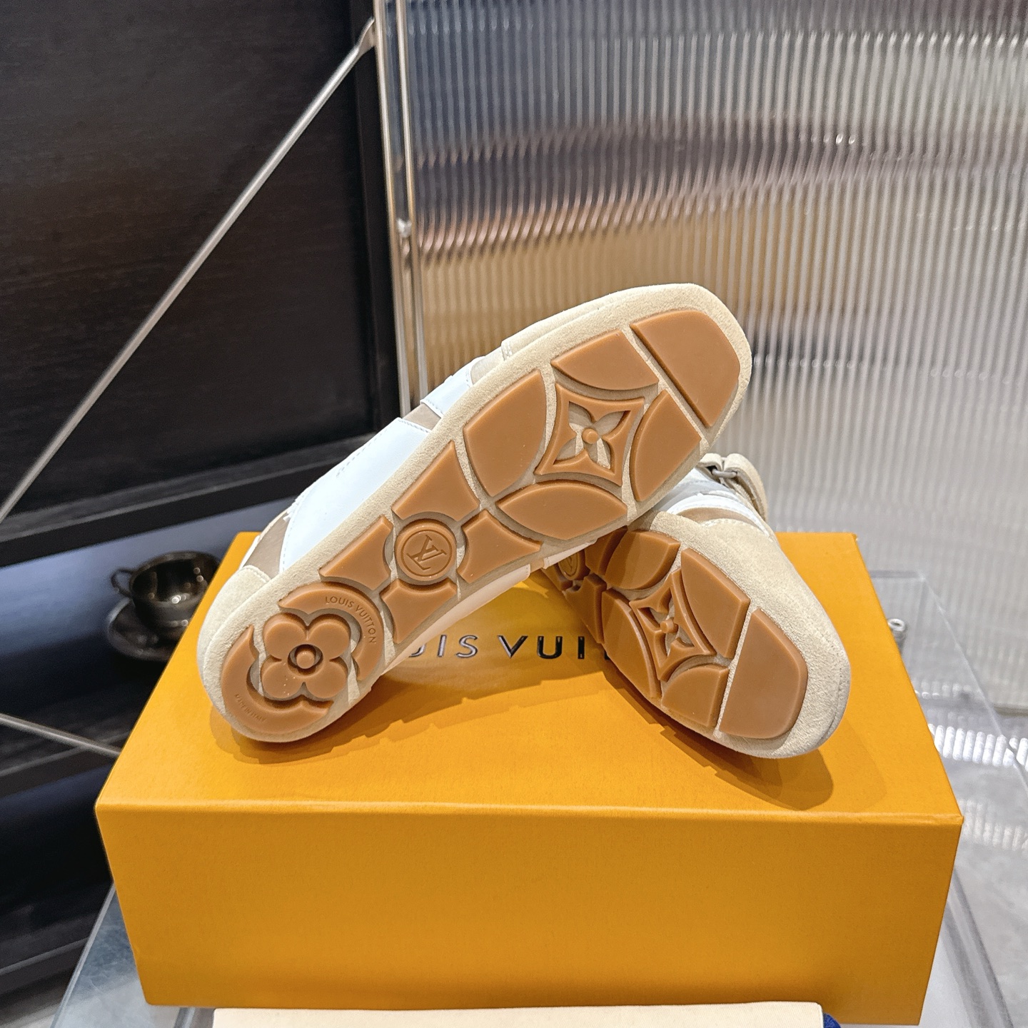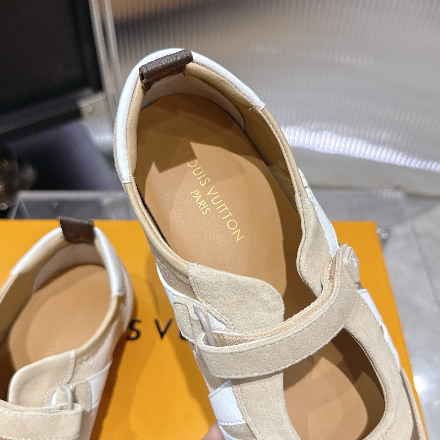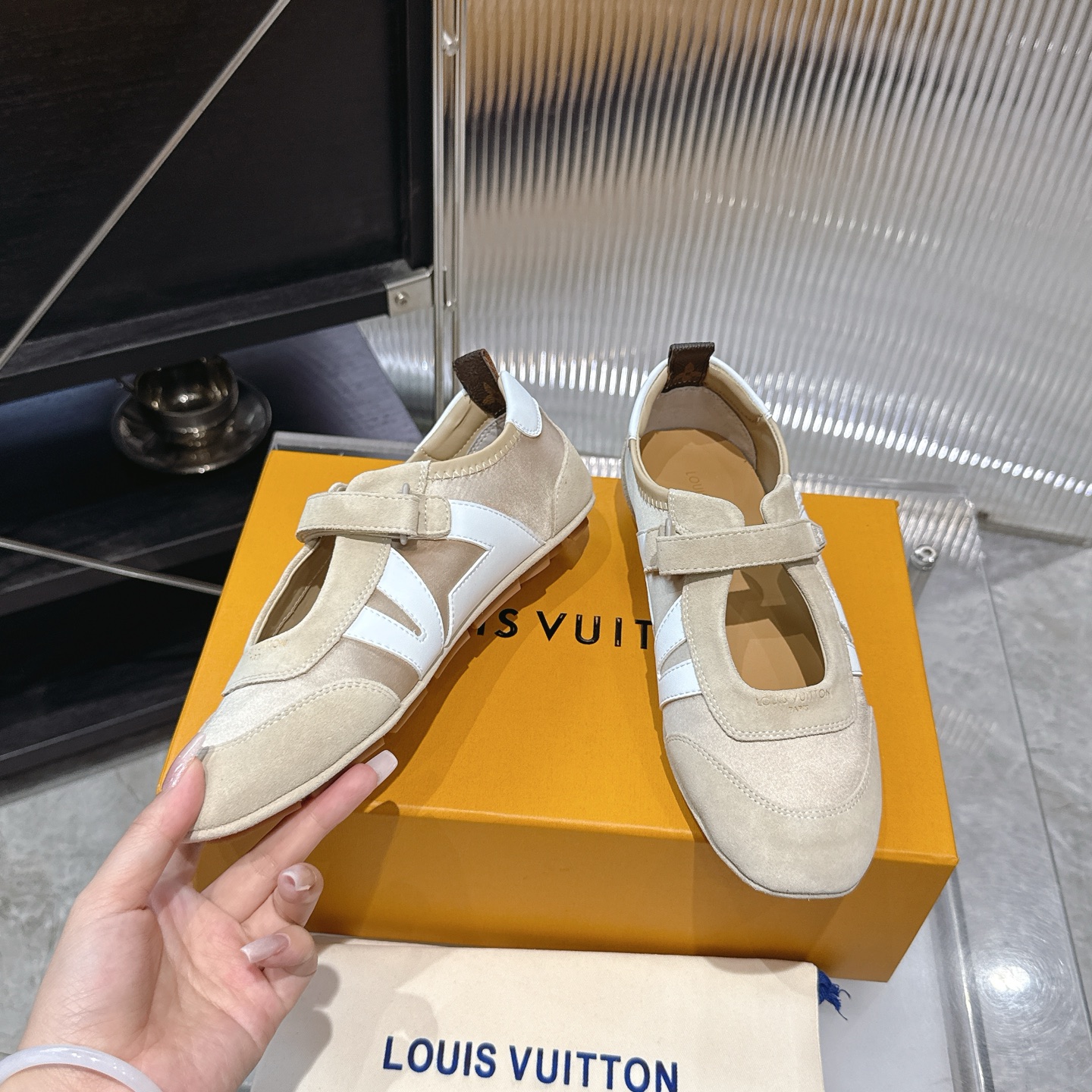 这款鞋子是AAAAA 1:1 质量 (非常棒). 使用了和原版一模一样的材料. 商标部分也保持了和路易威登/Louis Vuitton一样. 图片拍摄是实物鞋子拍摄, 您所收到的实物保证和我们图片一模一样.