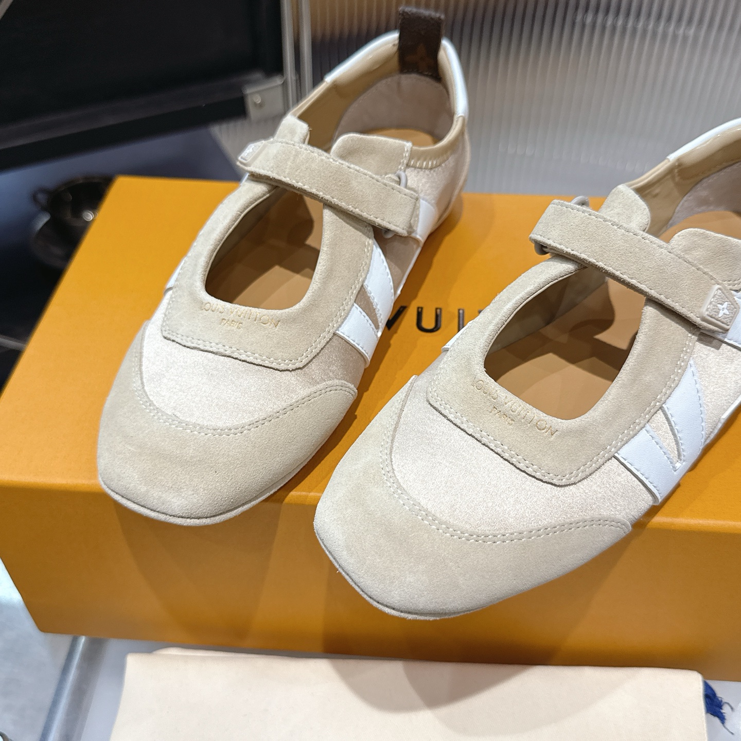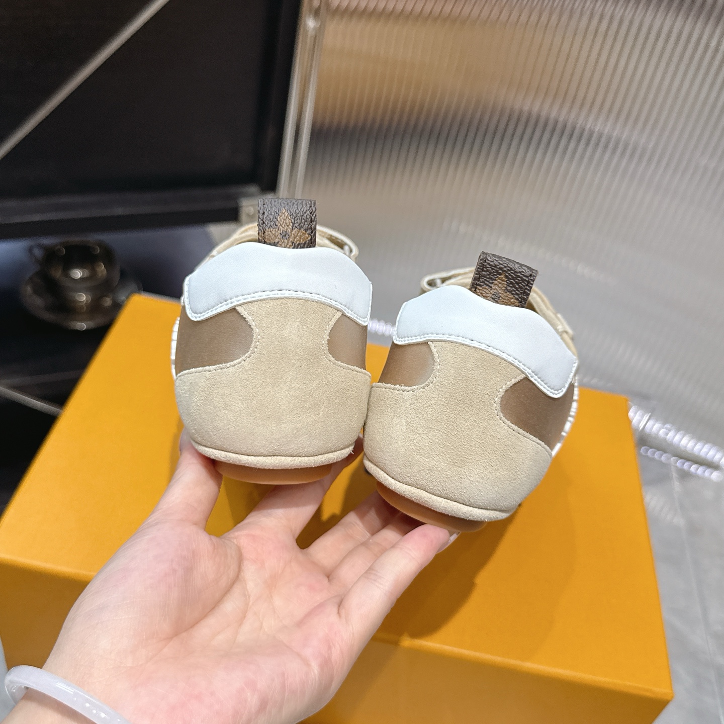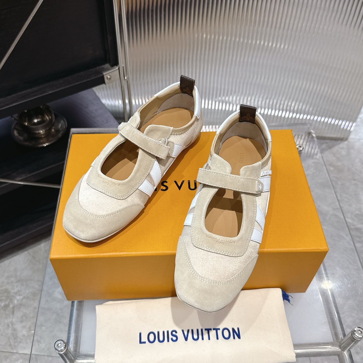 这款鞋子是AAAAA 1:1 质量 (非常棒). 使用了和原版一模一样的材料. 商标部分也保持了和路易威登/Louis Vuitton一样. 图片拍摄是实物鞋子拍摄, 您所收到的实物保证和我们图片一模一样.