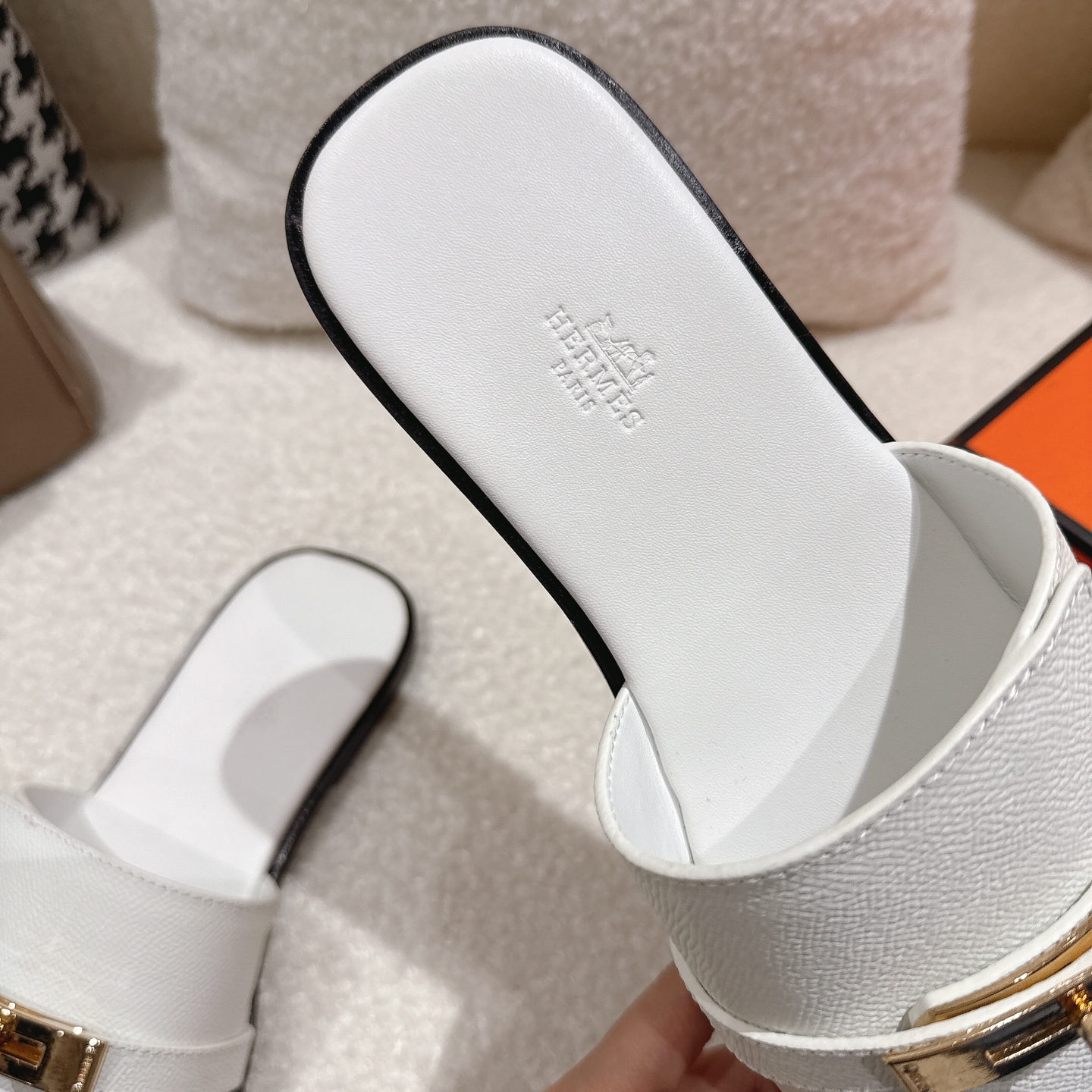 这款鞋子是AAAAA 1:1 质量 (非常棒). 使用了和原版一模一样的材料. 商标部分也保持了和爱马仕/Hermes一样. 图片拍摄是实物鞋子拍摄, 您所收到的实物保证和我们图片一模一样.