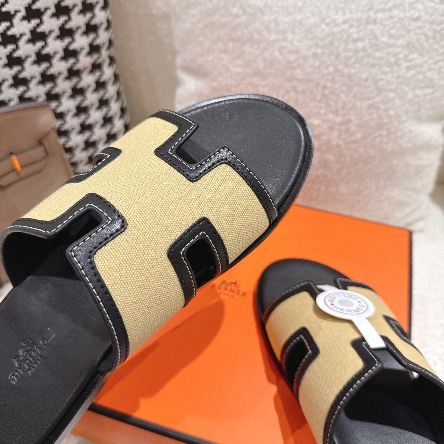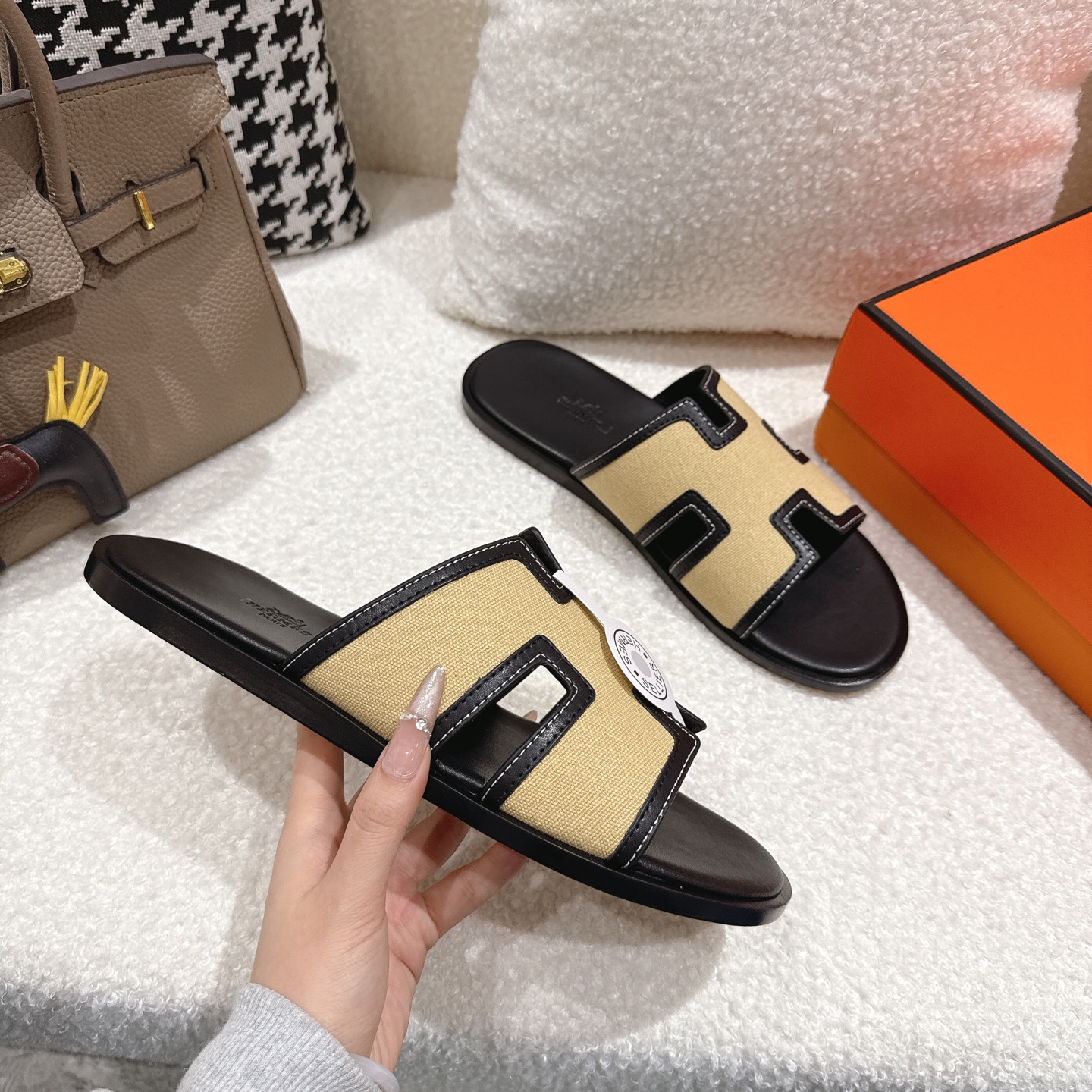 这款鞋子是AAAAA 1:1 质量 (非常棒). 使用了和原版一模一样的材料. 商标部分也保持了和爱马仕/Hermes一样. 图片拍摄是实物鞋子拍摄, 您所收到的实物保证和我们图片一模一样.