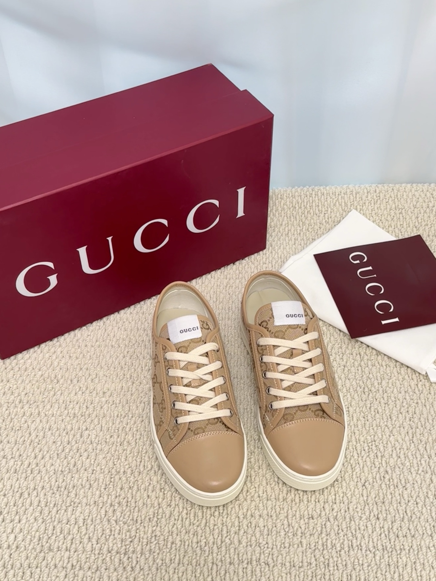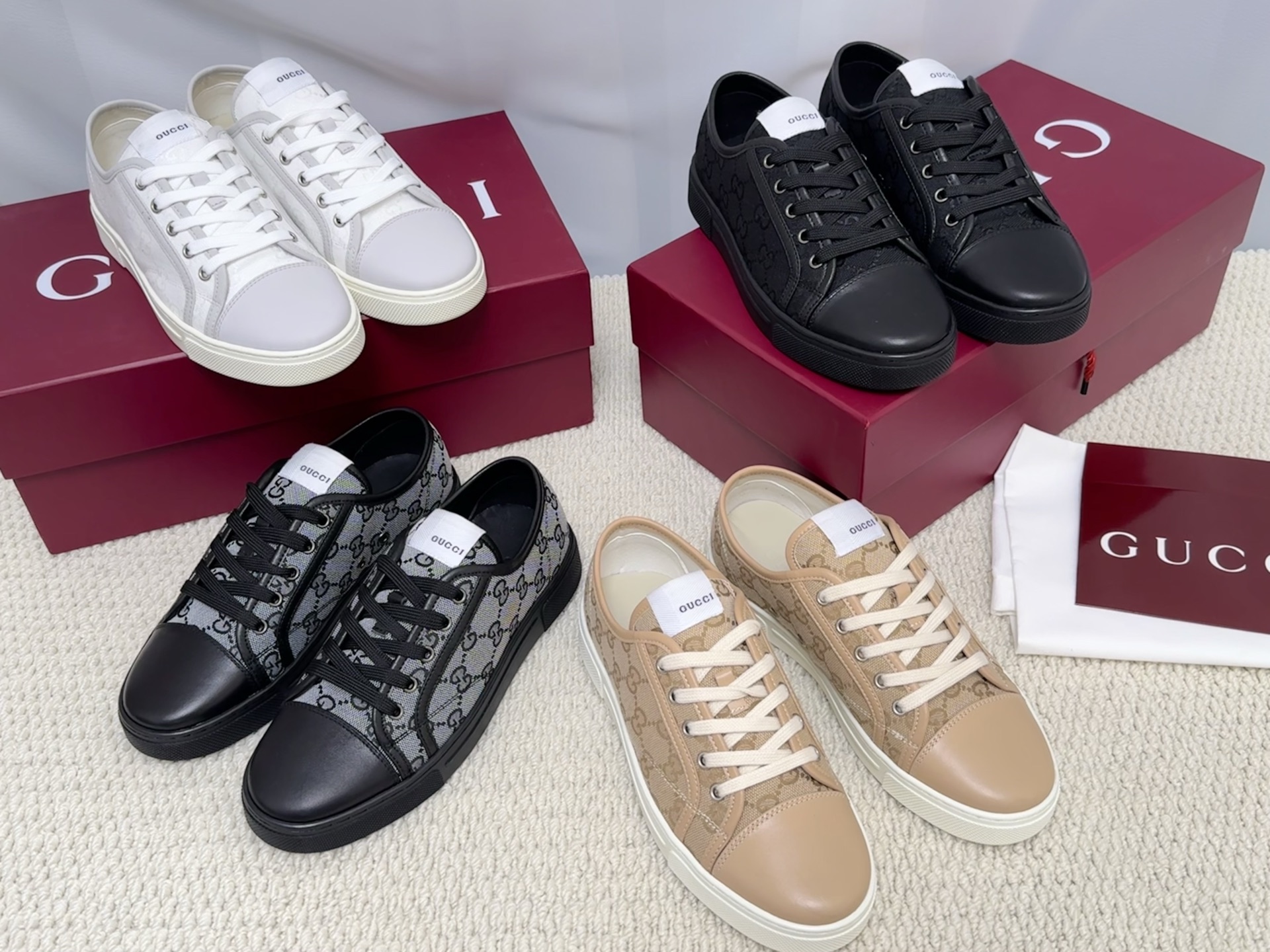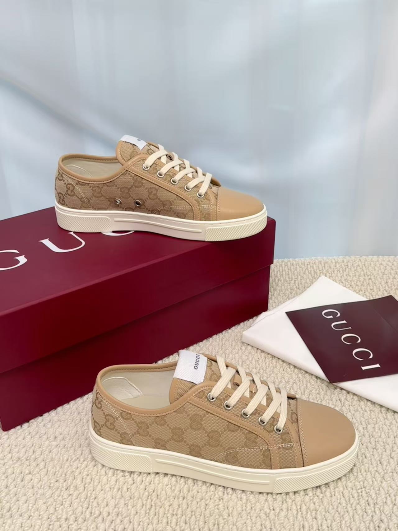 这款鞋子是AAAAA 1:1 质量 (非常棒). 使用了和原版一模一样的材料. 商标部分也保持了和古奇/Gucci一样. 图片拍摄是实物鞋子拍摄, 您所收到的实物保证和我们图片一模一样.