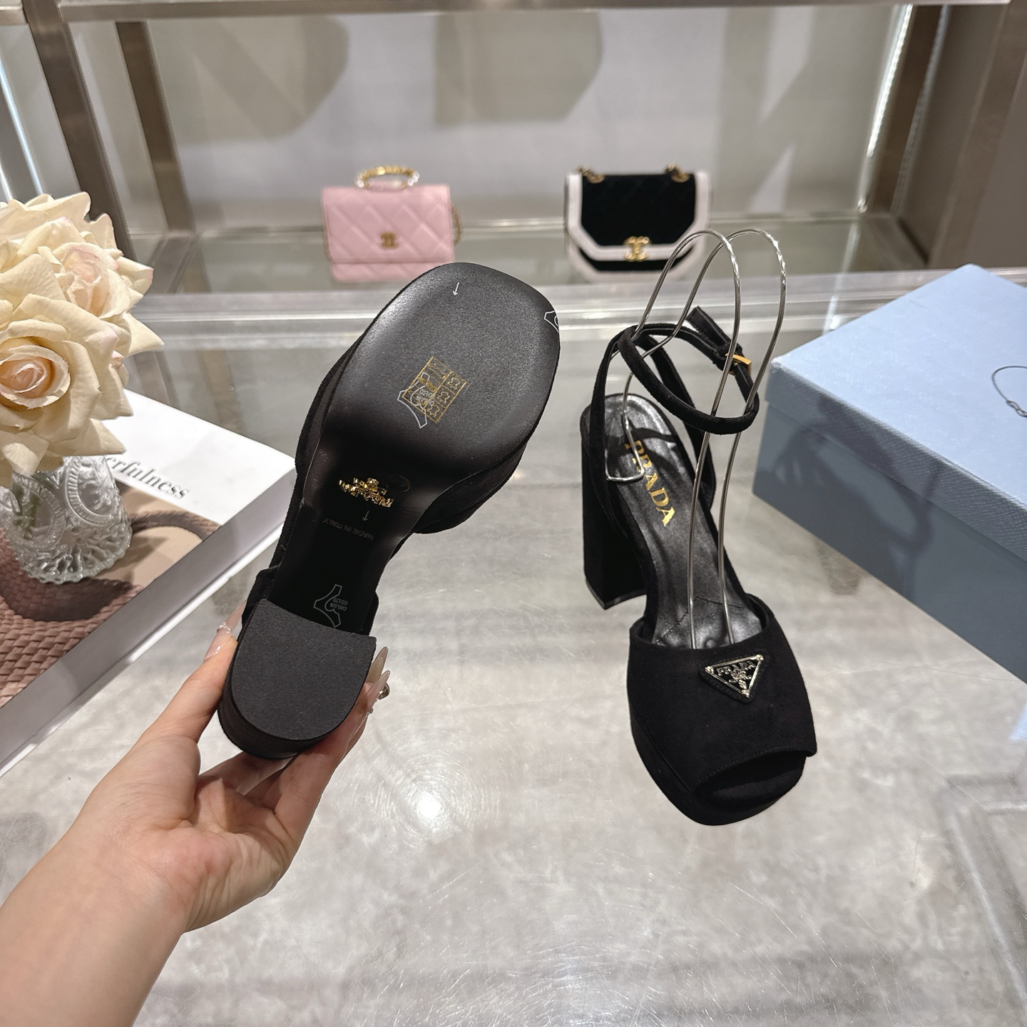 这款鞋子是AAAAA 1:1 质量 (非常棒). 使用了和原版一模一样的材料. 商标部分也保持了和普拉达/Prada一样. 图片拍摄是实物鞋子拍摄, 您所收到的实物保证和我们图片一模一样.