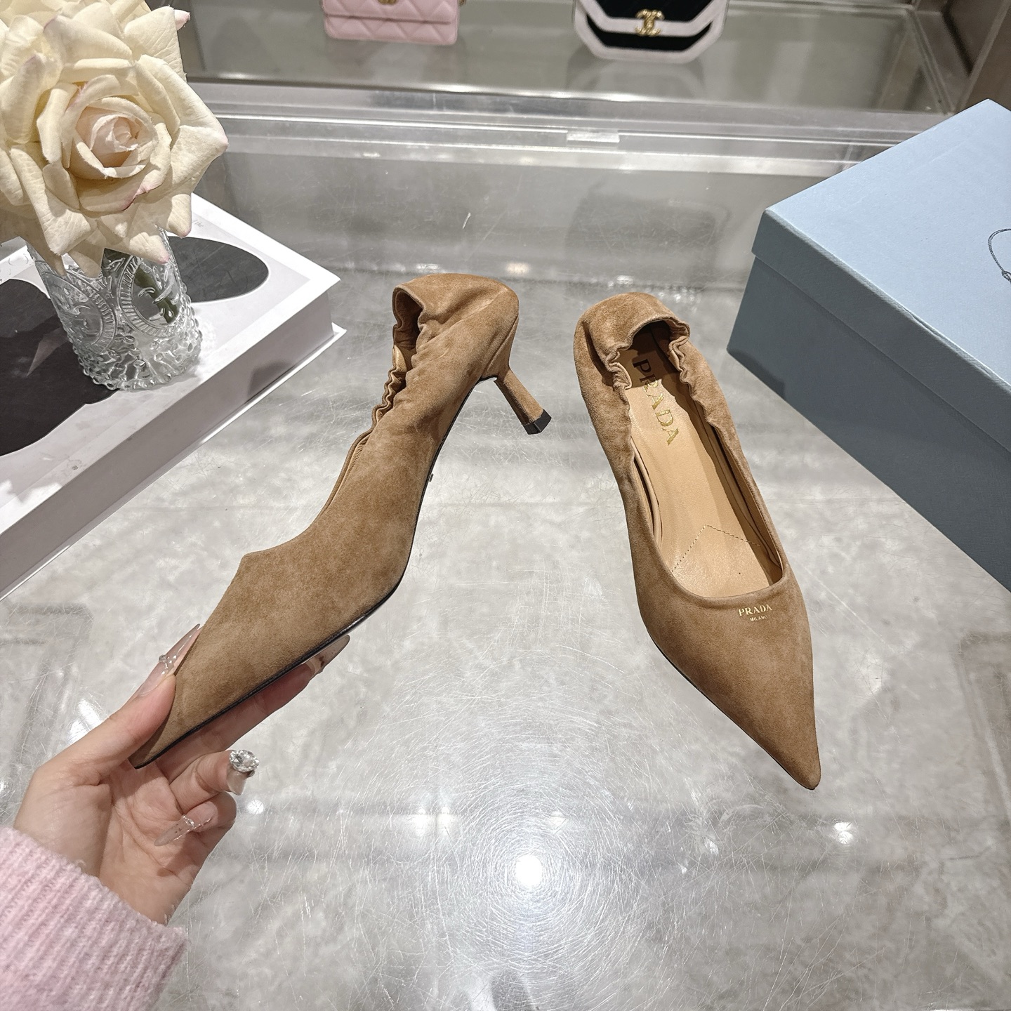 这款鞋子是AAAAA 1:1 质量 (非常棒). 使用了和原版一模一样的材料. 商标部分也保持了和普拉达/Prada一样. 图片拍摄是实物鞋子拍摄, 您所收到的实物保证和我们图片一模一样.