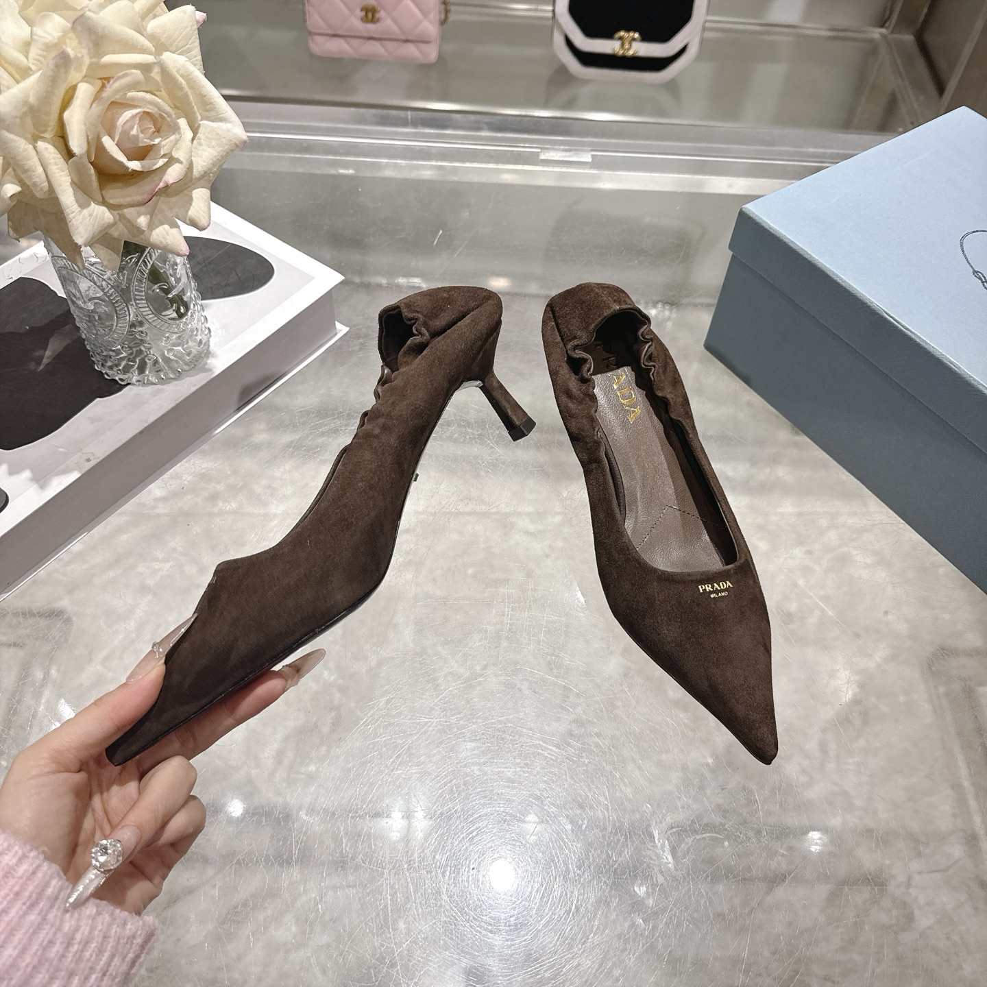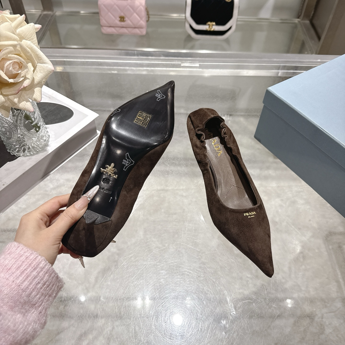 这款鞋子是AAAAA 1:1 质量 (非常棒). 使用了和原版一模一样的材料. 商标部分也保持了和普拉达/Prada一样. 图片拍摄是实物鞋子拍摄, 您所收到的实物保证和我们图片一模一样.
