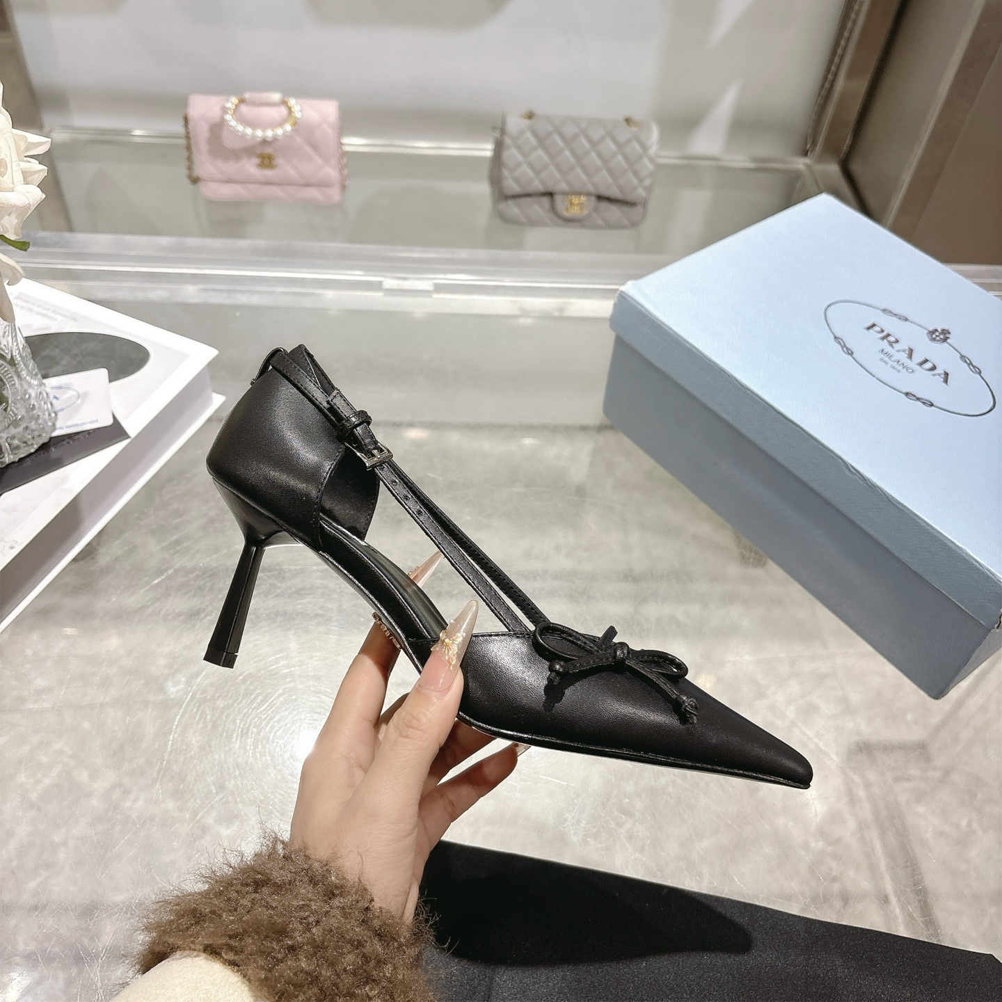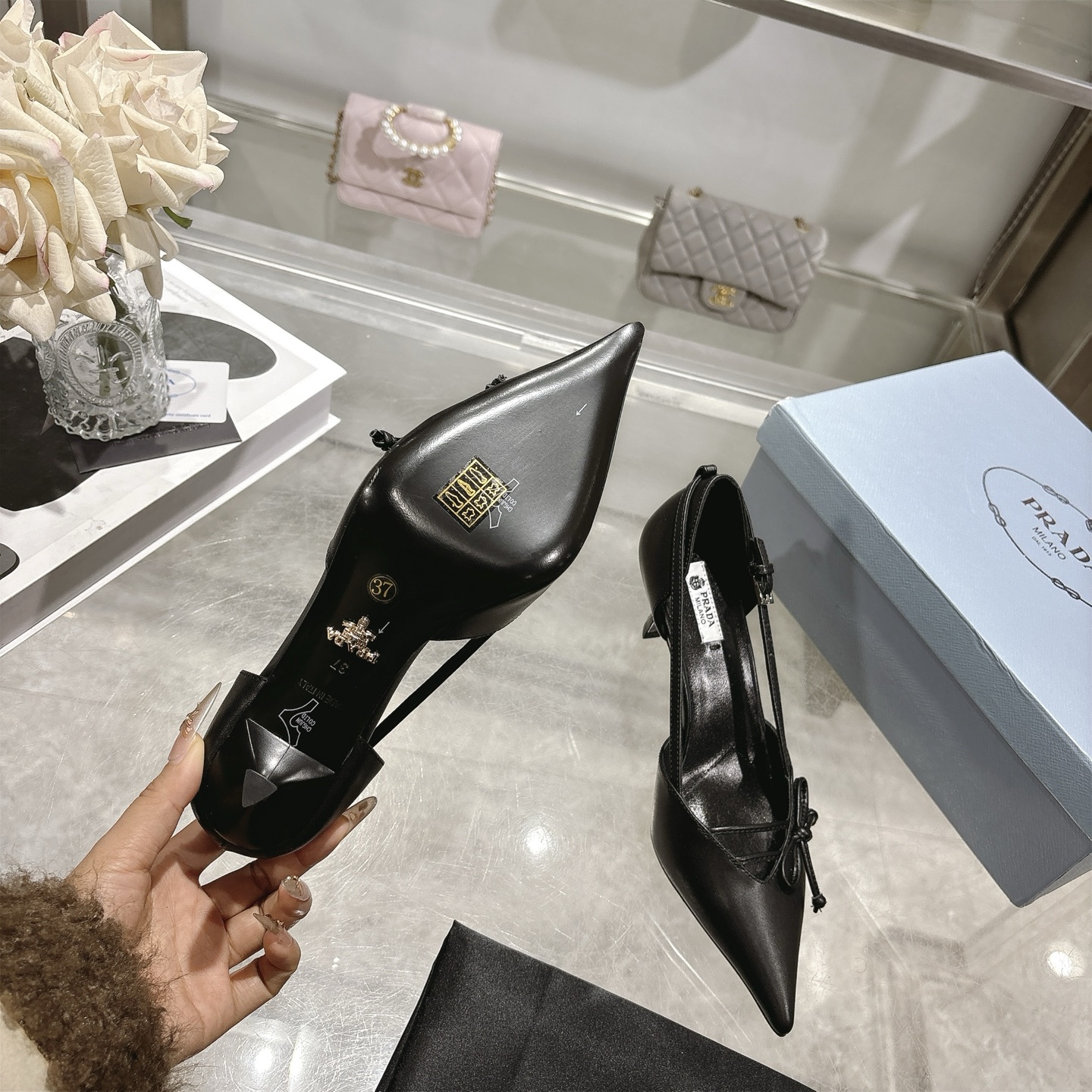 这款鞋子是AAAAA 1:1 质量 (非常棒). 使用了和原版一模一样的材料. 商标部分也保持了和普拉达/Prada一样. 图片拍摄是实物鞋子拍摄, 您所收到的实物保证和我们图片一模一样.