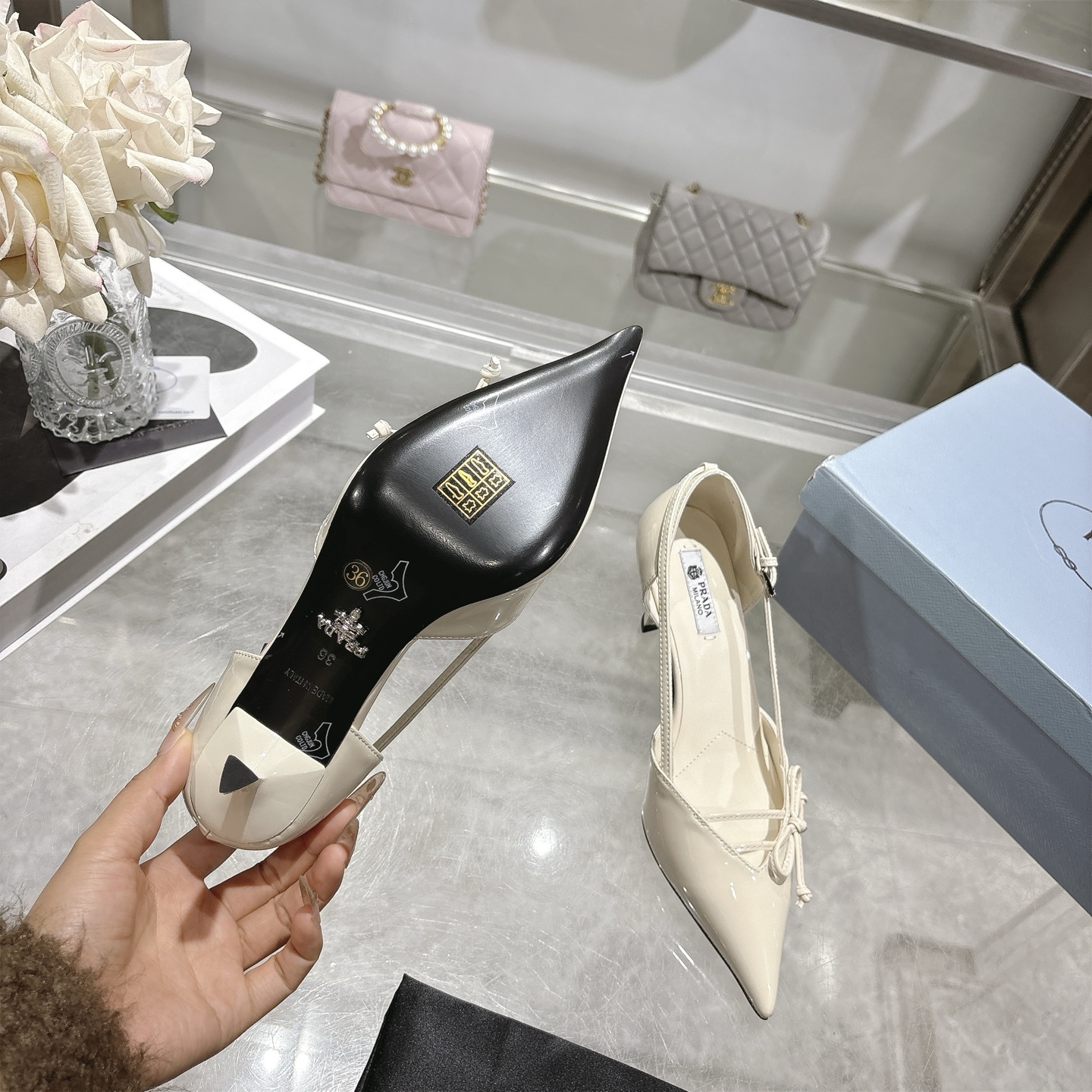 这款鞋子是AAAAA 1:1 质量 (非常棒). 使用了和原版一模一样的材料. 商标部分也保持了和普拉达/Prada一样. 图片拍摄是实物鞋子拍摄, 您所收到的实物保证和我们图片一模一样.