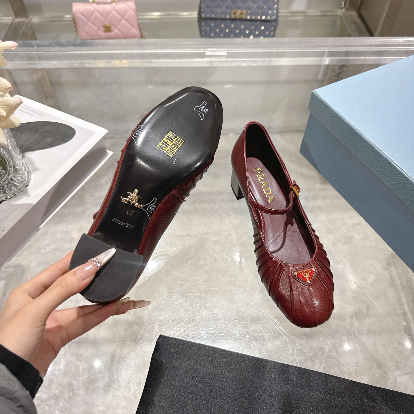 这款鞋子是AAAAA 1:1 质量 (非常棒). 使用了和原版一模一样的材料. 商标部分也保持了和普拉达/Prada一样. 图片拍摄是实物鞋子拍摄, 您所收到的实物保证和我们图片一模一样.