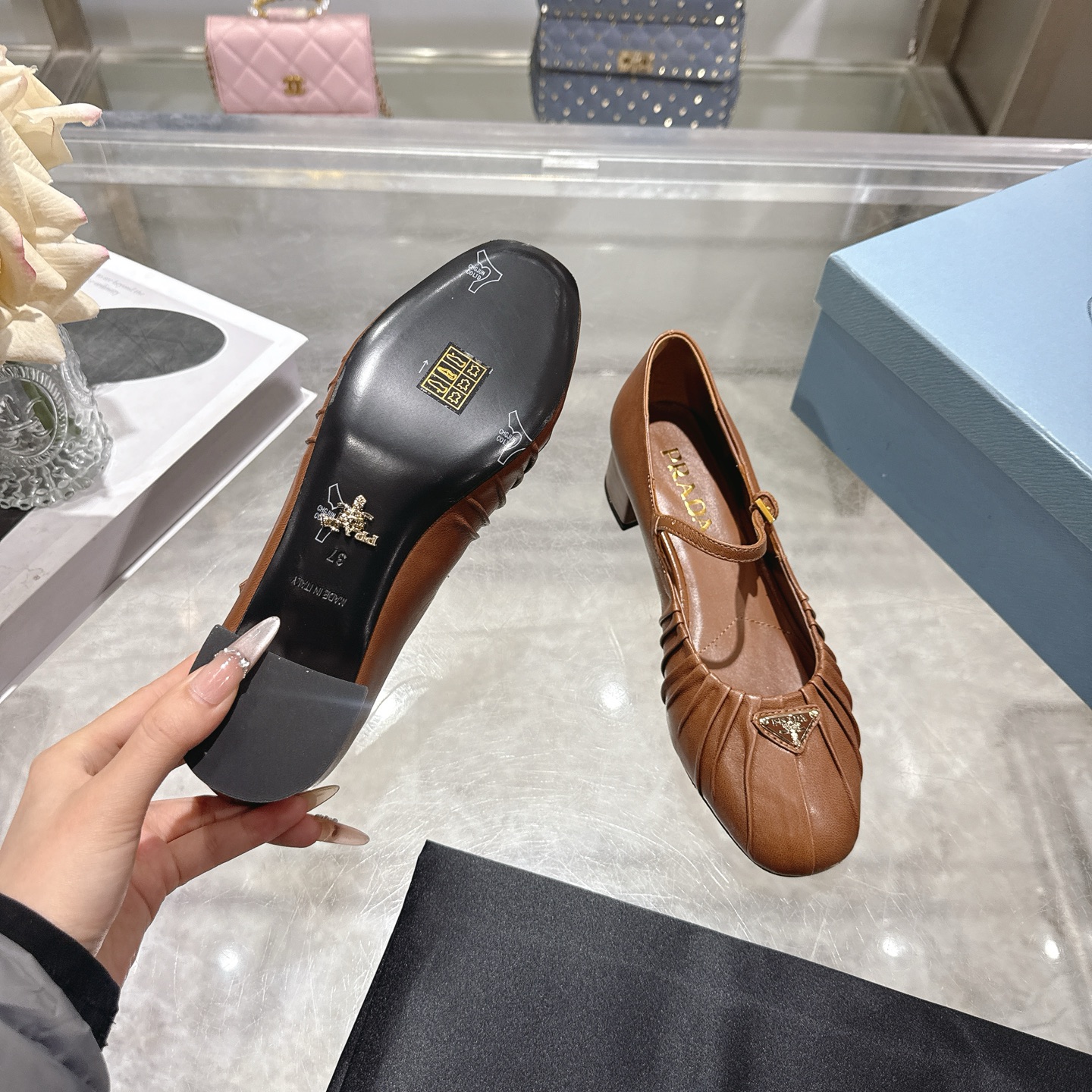 这款鞋子是AAAAA 1:1 质量 (非常棒). 使用了和原版一模一样的材料. 商标部分也保持了和普拉达/Prada一样. 图片拍摄是实物鞋子拍摄, 您所收到的实物保证和我们图片一模一样.