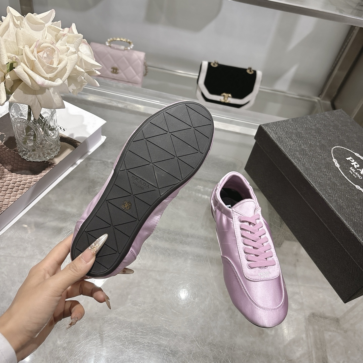 这款鞋子是AAAAA 1:1 质量 (非常棒). 使用了和原版一模一样的材料. 商标部分也保持了和普拉达/Prada一样. 图片拍摄是实物鞋子拍摄, 您所收到的实物保证和我们图片一模一样.