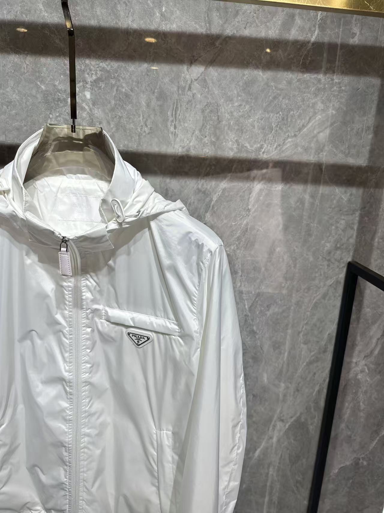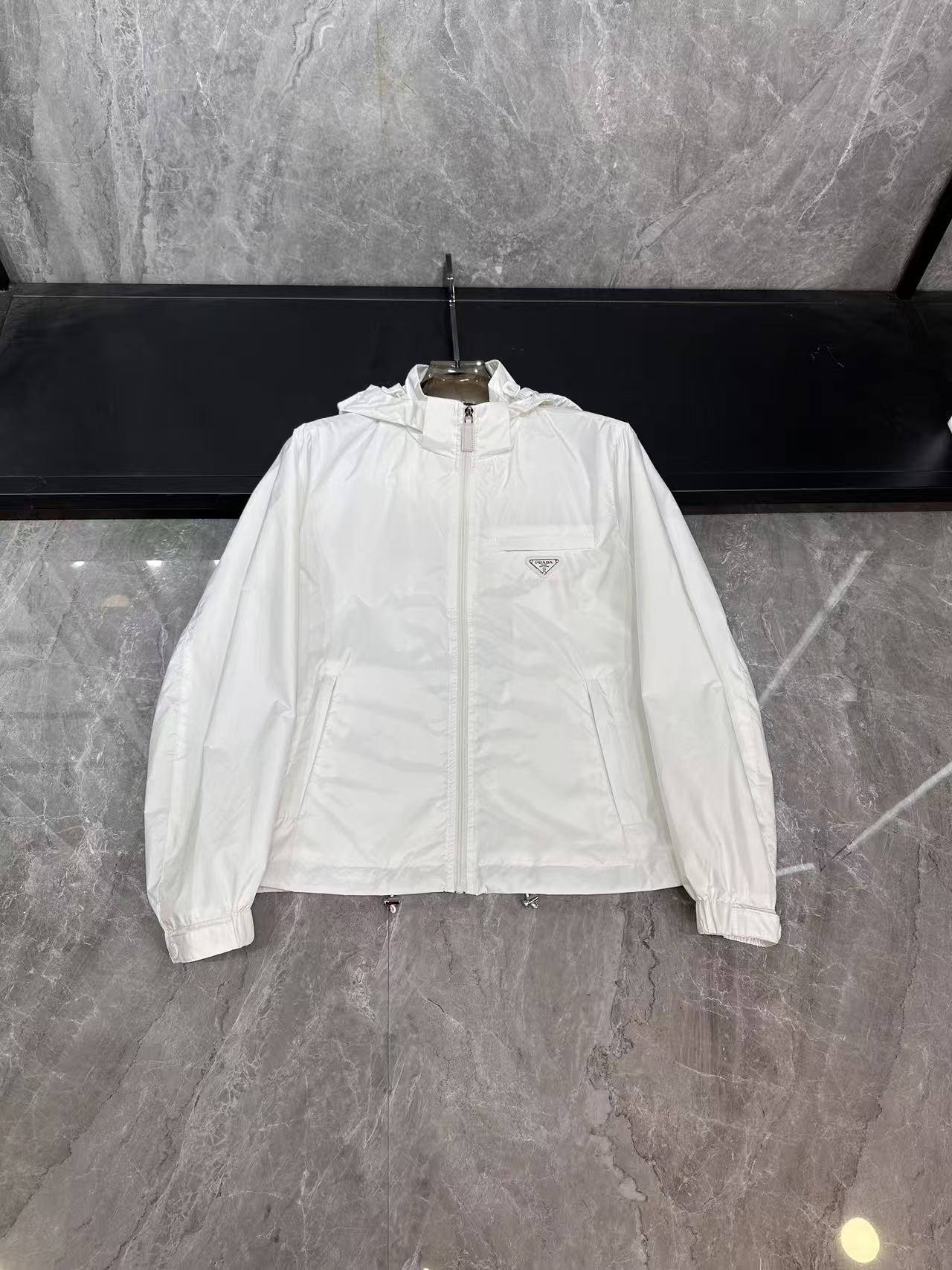 这款衣服是AAAAA 1:1 质量 (非常棒). 使用了和原版一模一样的材料. 商标部分也保持了和普拉达/Prada一样. 图片拍摄是实物衣服拍摄, 您所收到的实物保证和我们图片一模一样.