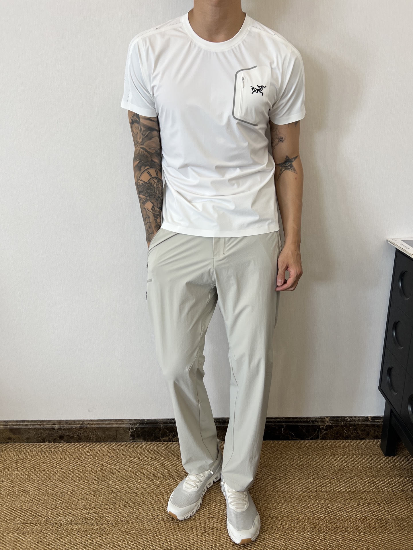这款衣服是AAAAA 1:1 质量 (非常棒). 使用了和原版一模一样的材料. 商标部分也保持了和ARC'TERYX一样. 图片拍摄是实物衣服拍摄, 您所收到的实物保证和我们图片一模一样.