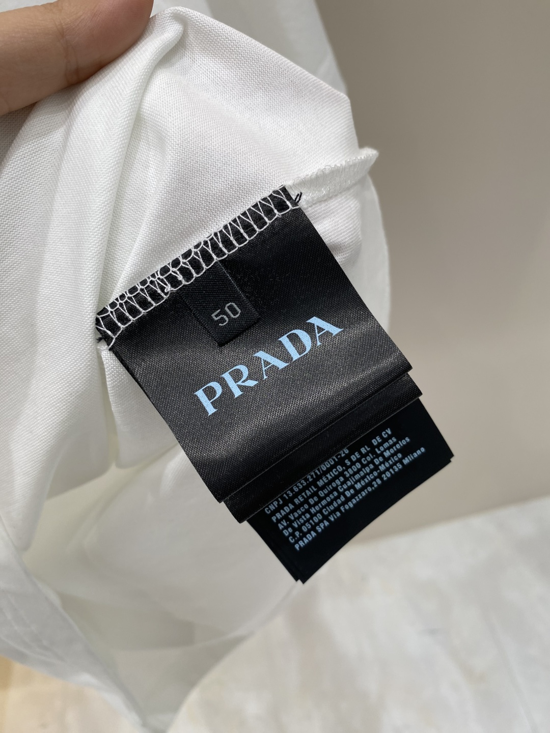 这款衣服是AAAAA 1:1 质量 (非常棒). 使用了和原版一模一样的材料. 商标部分也保持了和普拉达/Prada一样. 图片拍摄是实物衣服拍摄, 您所收到的实物保证和我们图片一模一样.