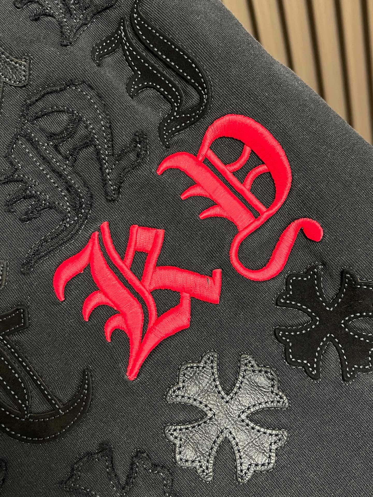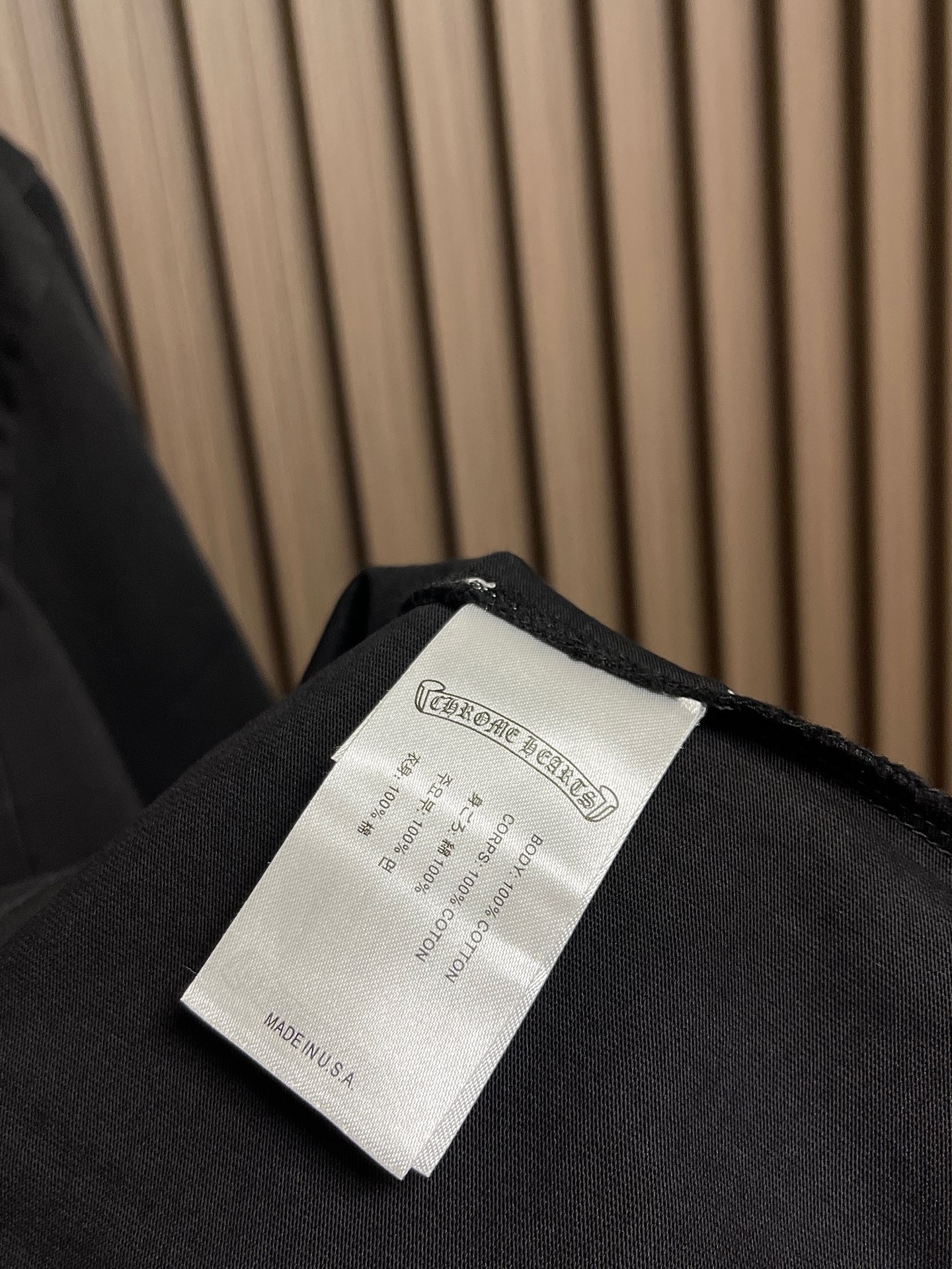 这款衣服是AAAAA 1:1 质量 (非常棒). 使用了和原版一模一样的材料. 商标部分也保持了和克罗心/Chrome Hearts一样. 图片拍摄是实物衣服拍摄, 您所收到的实物保证和我们图片一模一样.