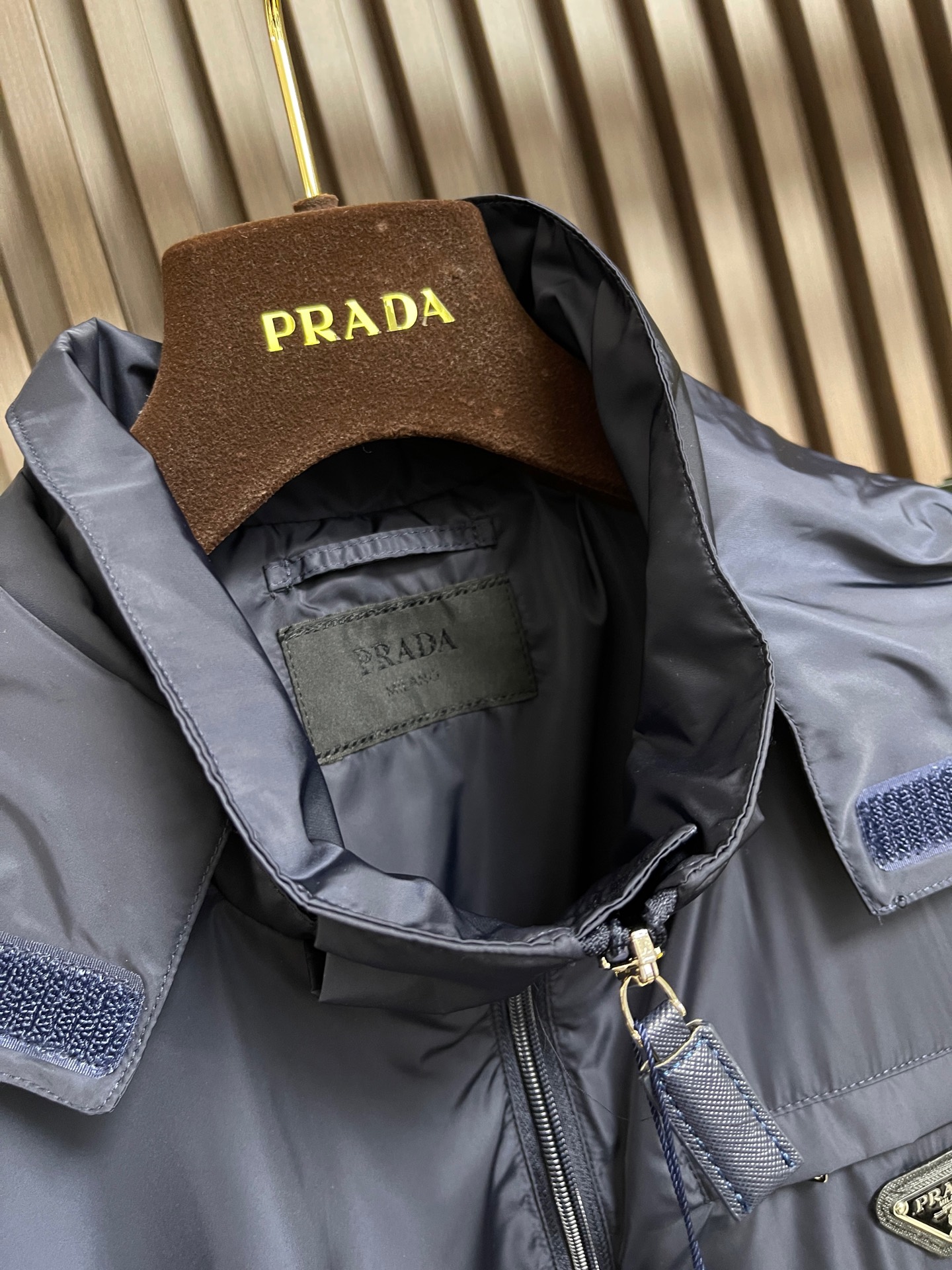 这款衣服是AAAAA 1:1 质量 (非常棒). 使用了和原版一模一样的材料. 商标部分也保持了和普拉达/Prada一样. 图片拍摄是实物衣服拍摄, 您所收到的实物保证和我们图片一模一样.