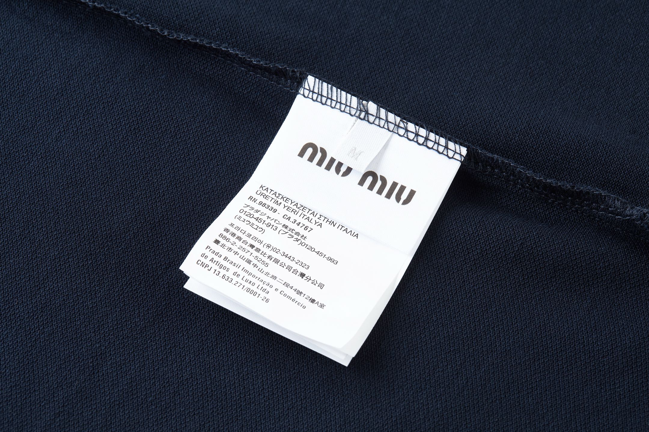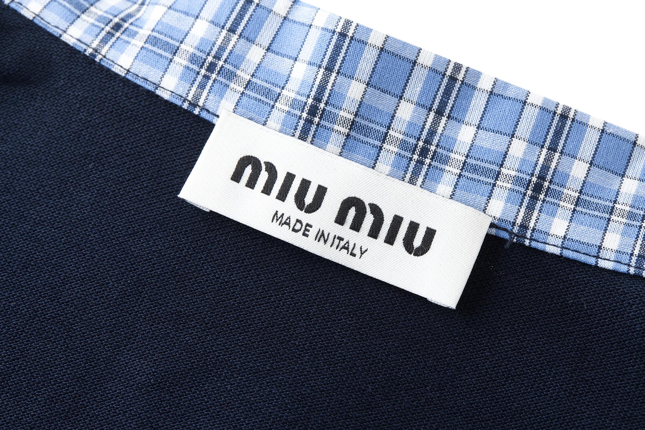 这款衣服是AAAAA 1:1 质量 (非常棒). 使用了和原版一模一样的材料. 商标部分也保持了和缪缪/Miu Miu一样. 图片拍摄是实物衣服拍摄, 您所收到的实物保证和我们图片一模一样.