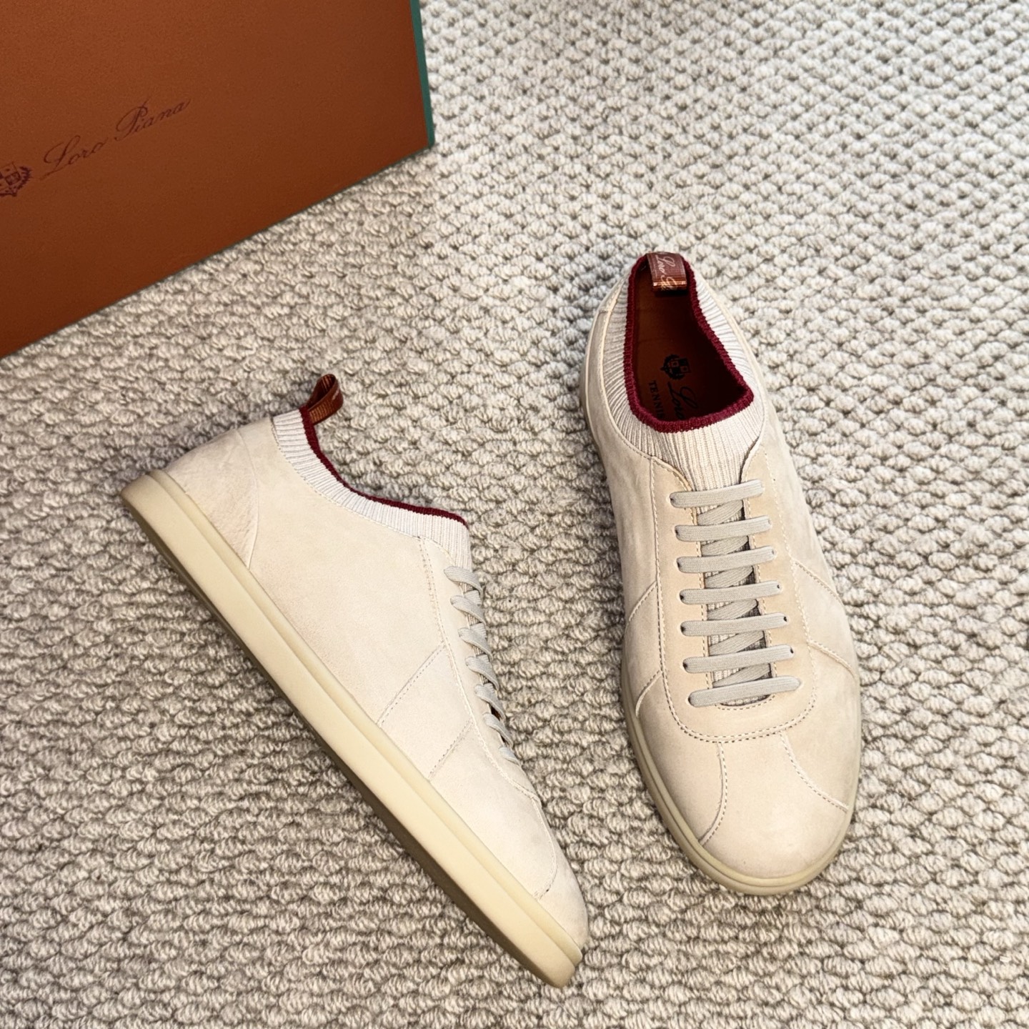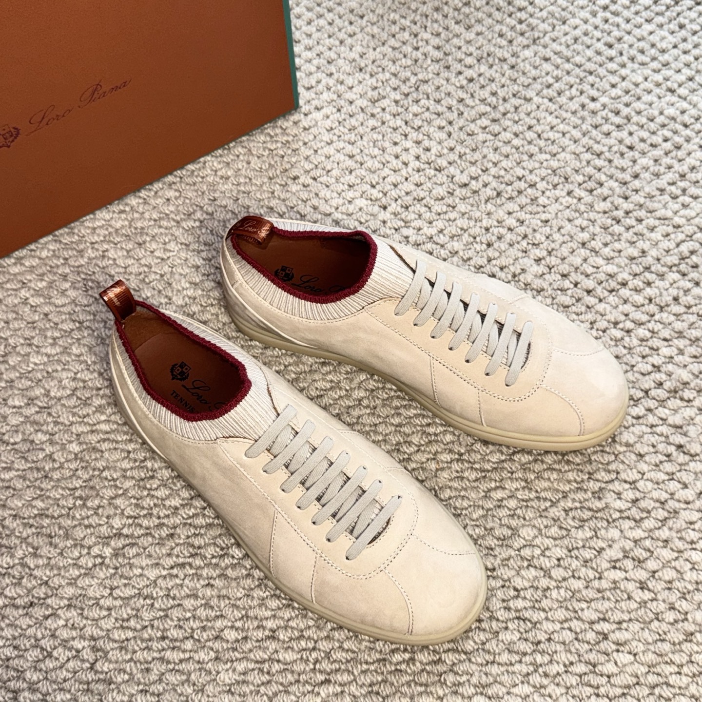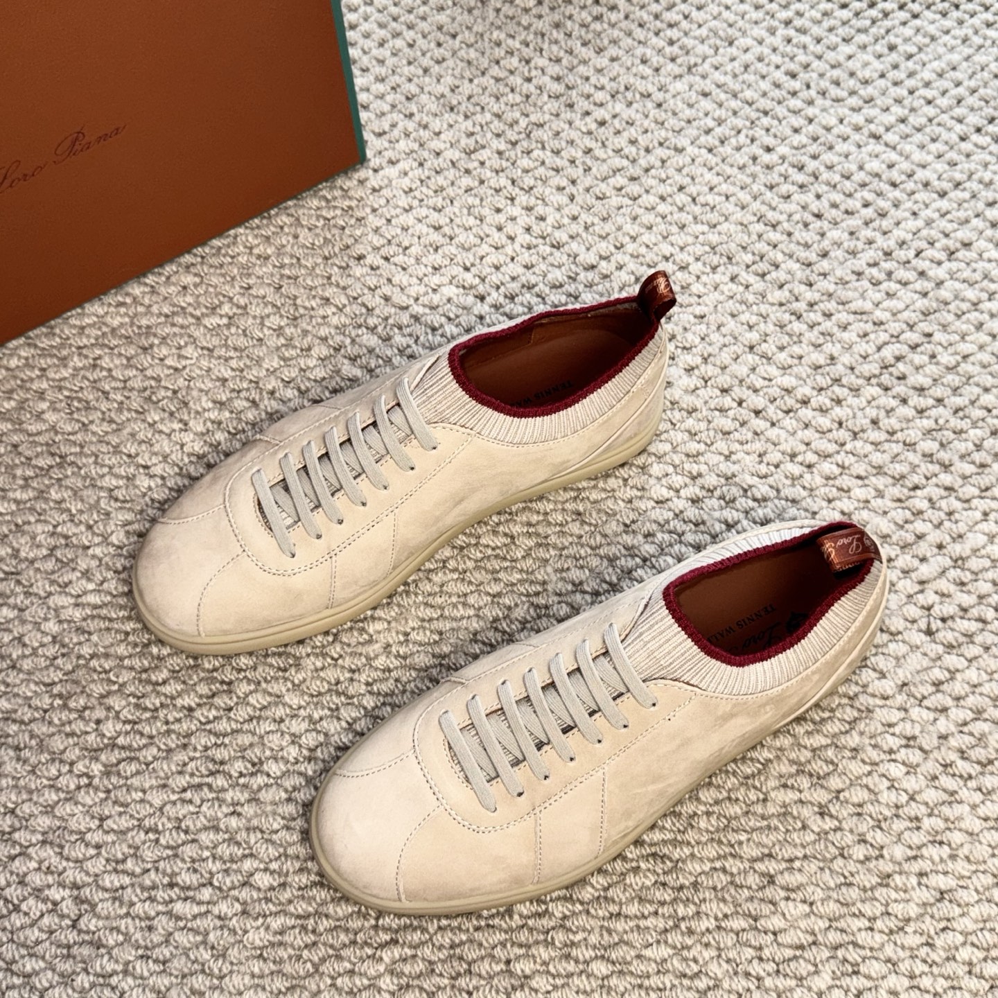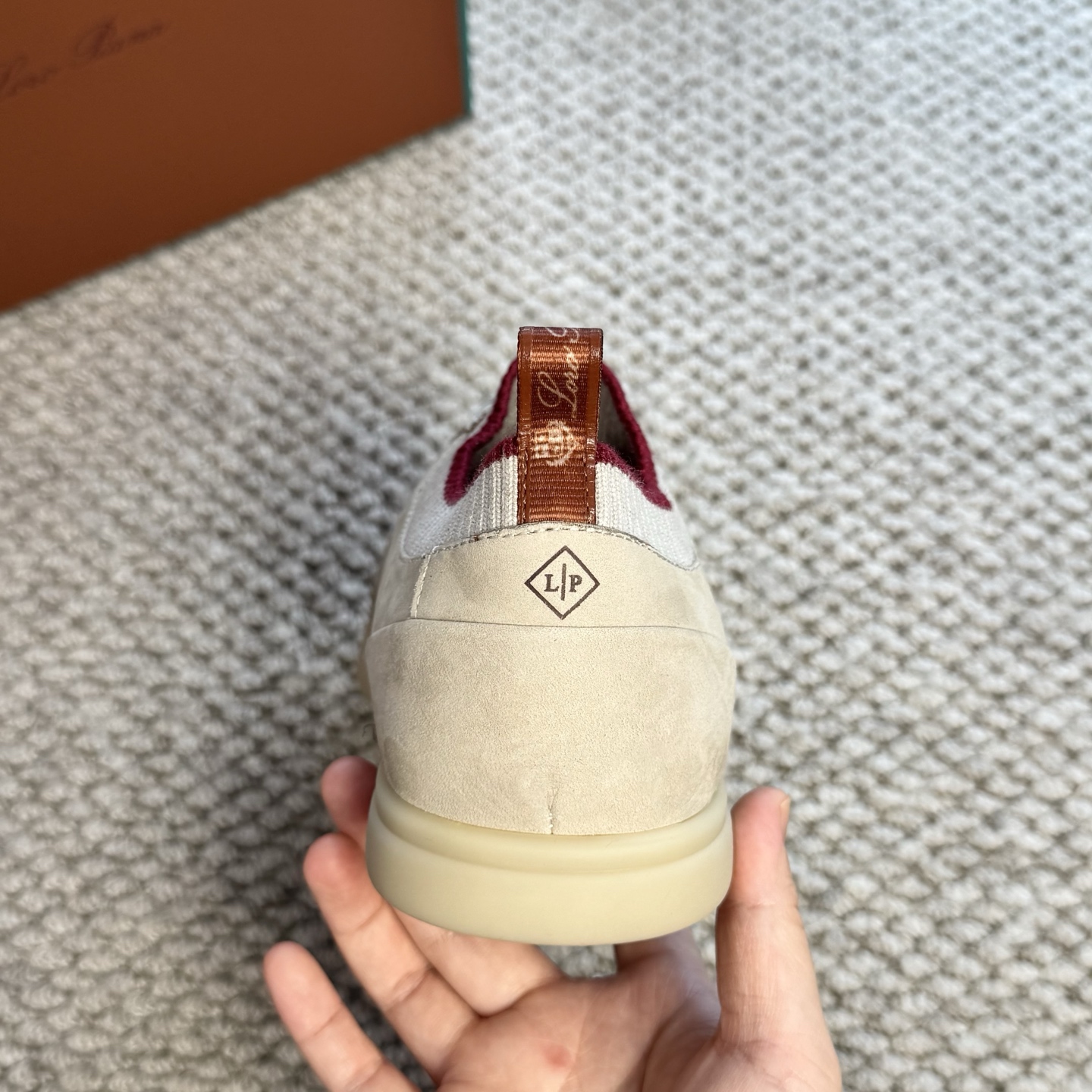 这款鞋子是AAAAA 1:1 质量 (非常棒). 使用了和原版一模一样的材料. 商标部分也保持了和洛罗皮亚纳/Loro Piana一样. 图片拍摄是实物鞋子拍摄, 您所收到的实物保证和我们图片一模一样.