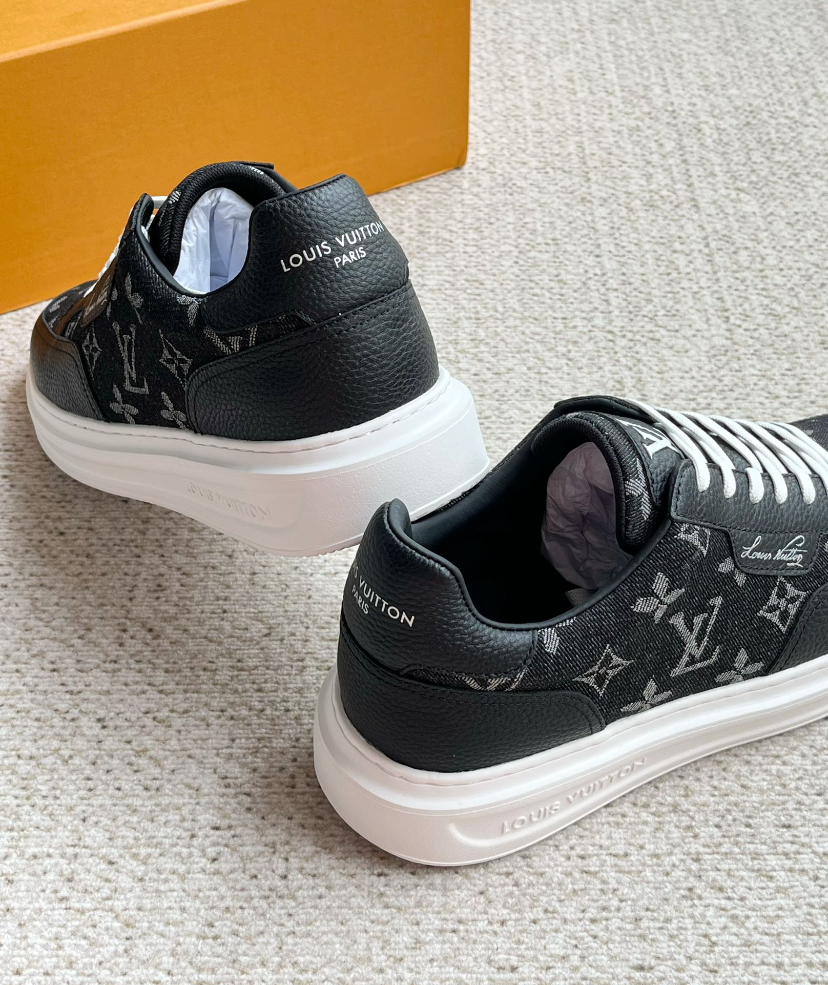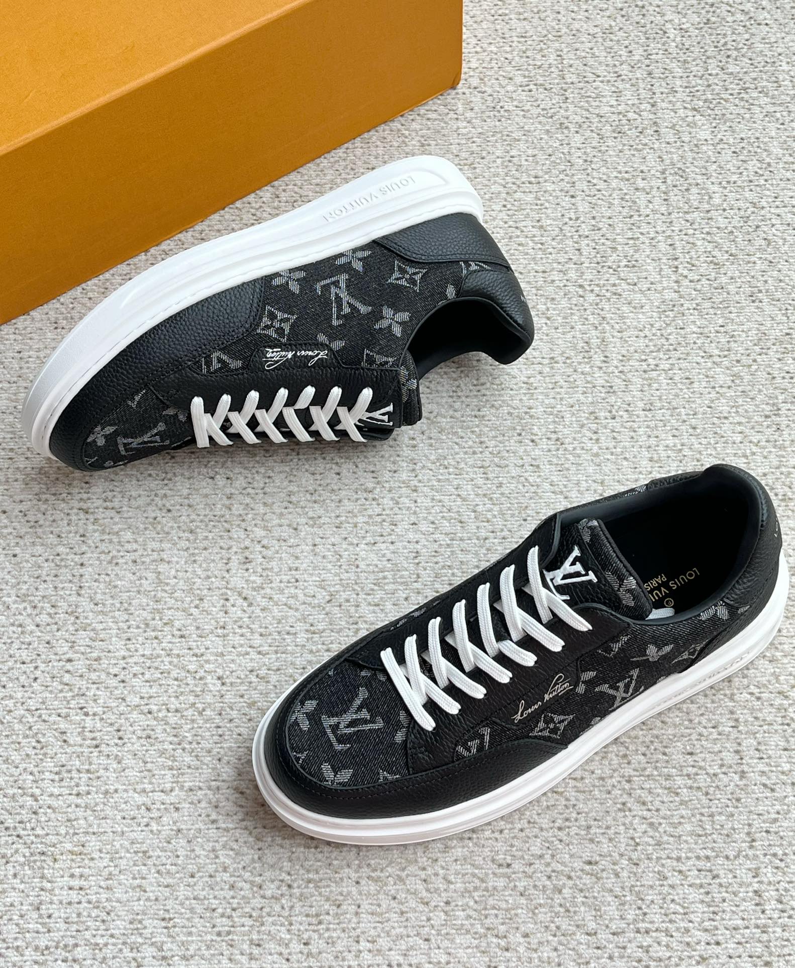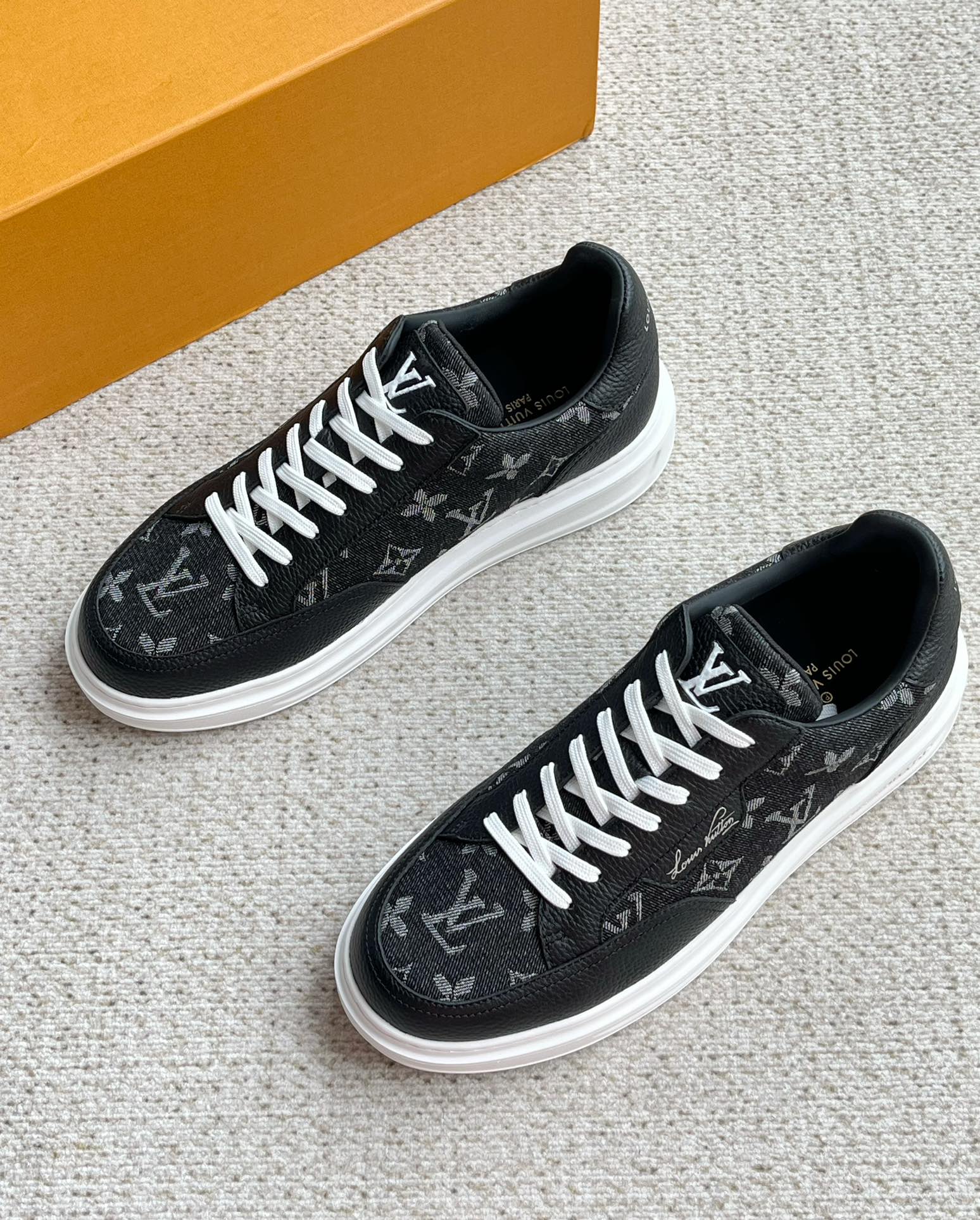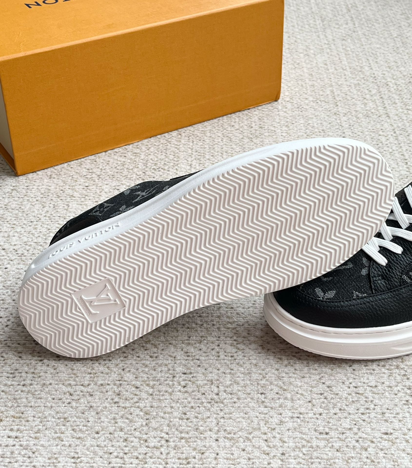 这款鞋子是AAAAA 1:1 质量 (非常棒). 使用了和原版一模一样的材料. 商标部分也保持了和路易威登/Louis Vuitton一样. 图片拍摄是实物鞋子拍摄, 您所收到的实物保证和我们图片一模一样.