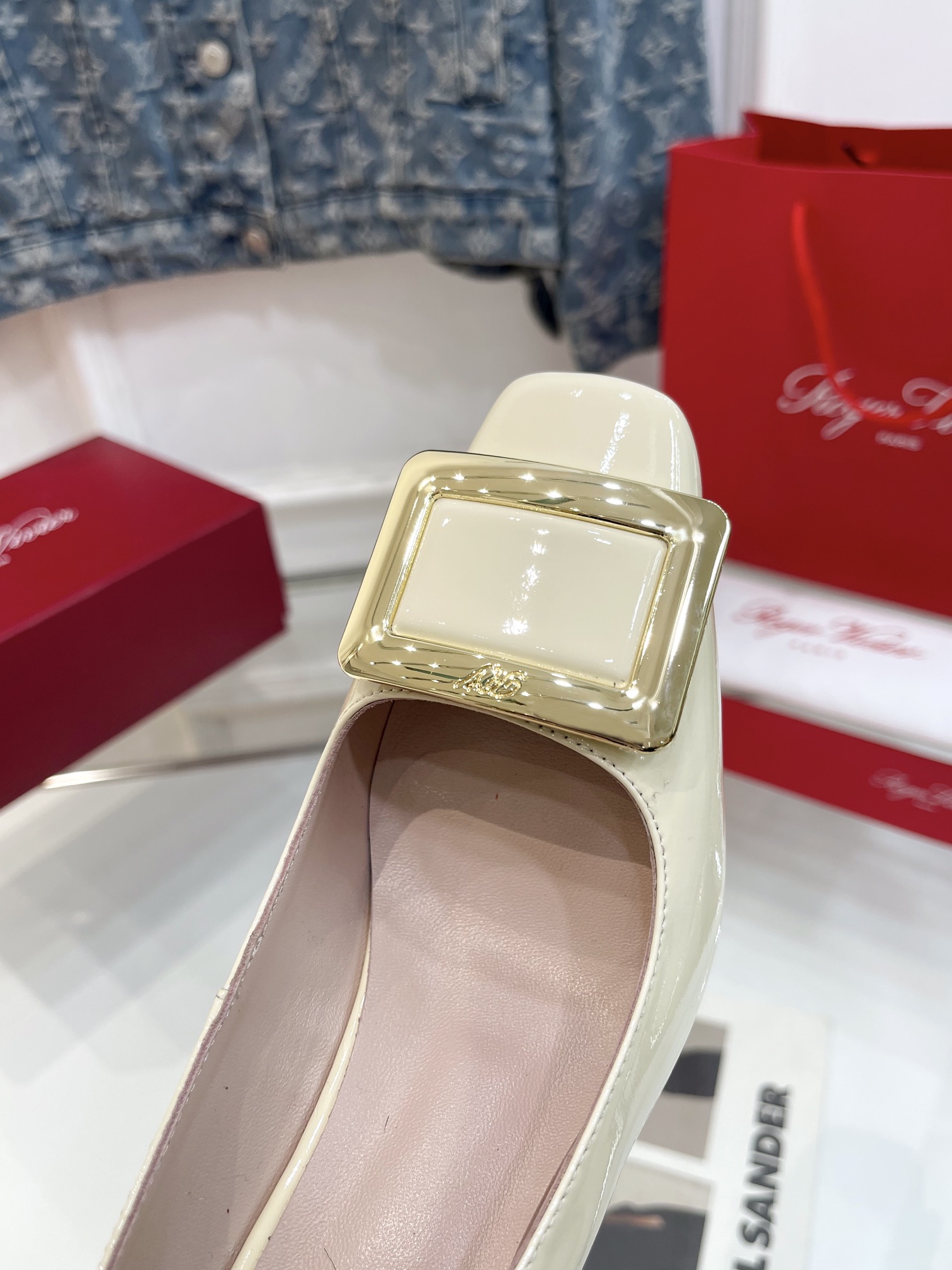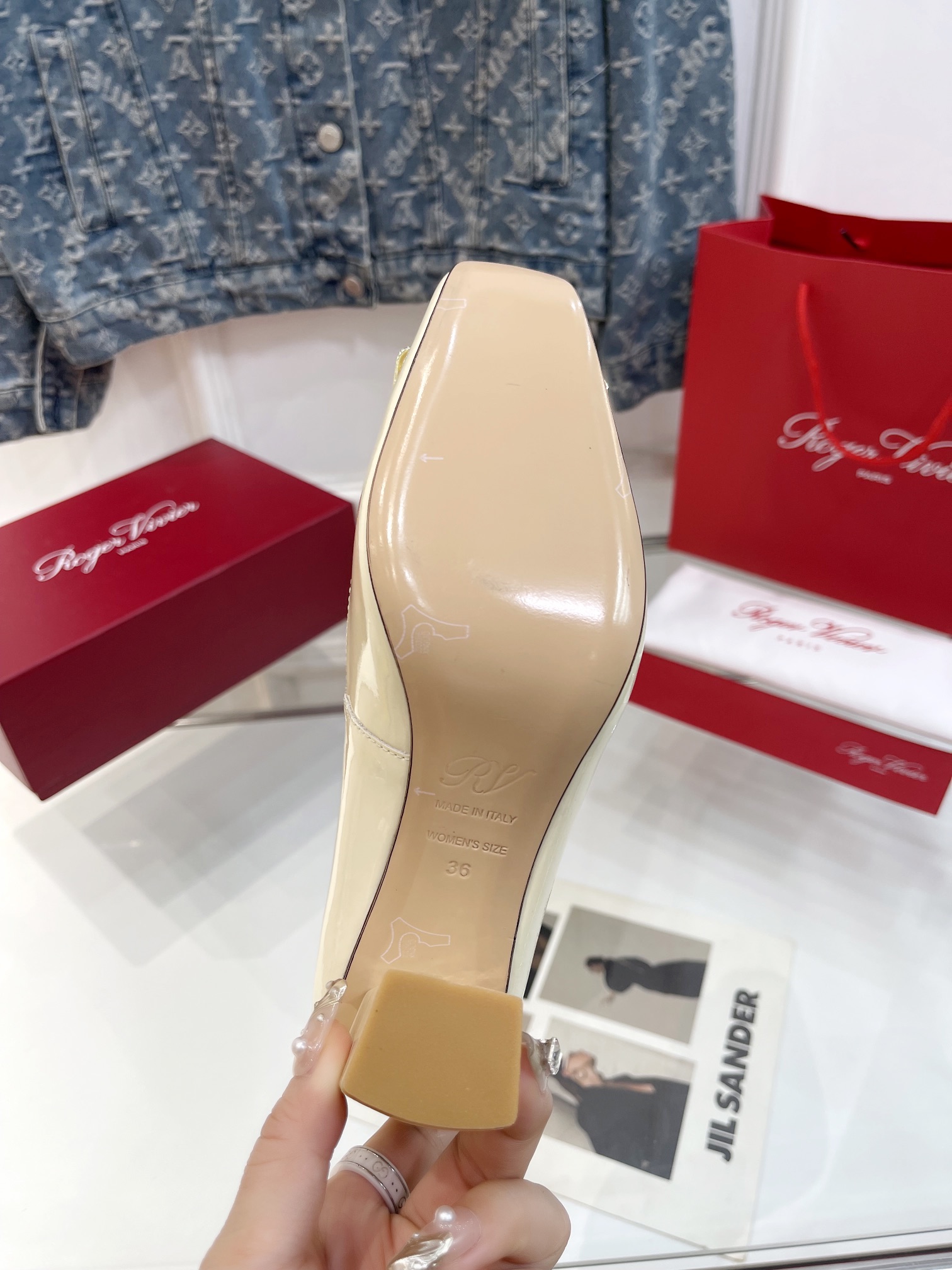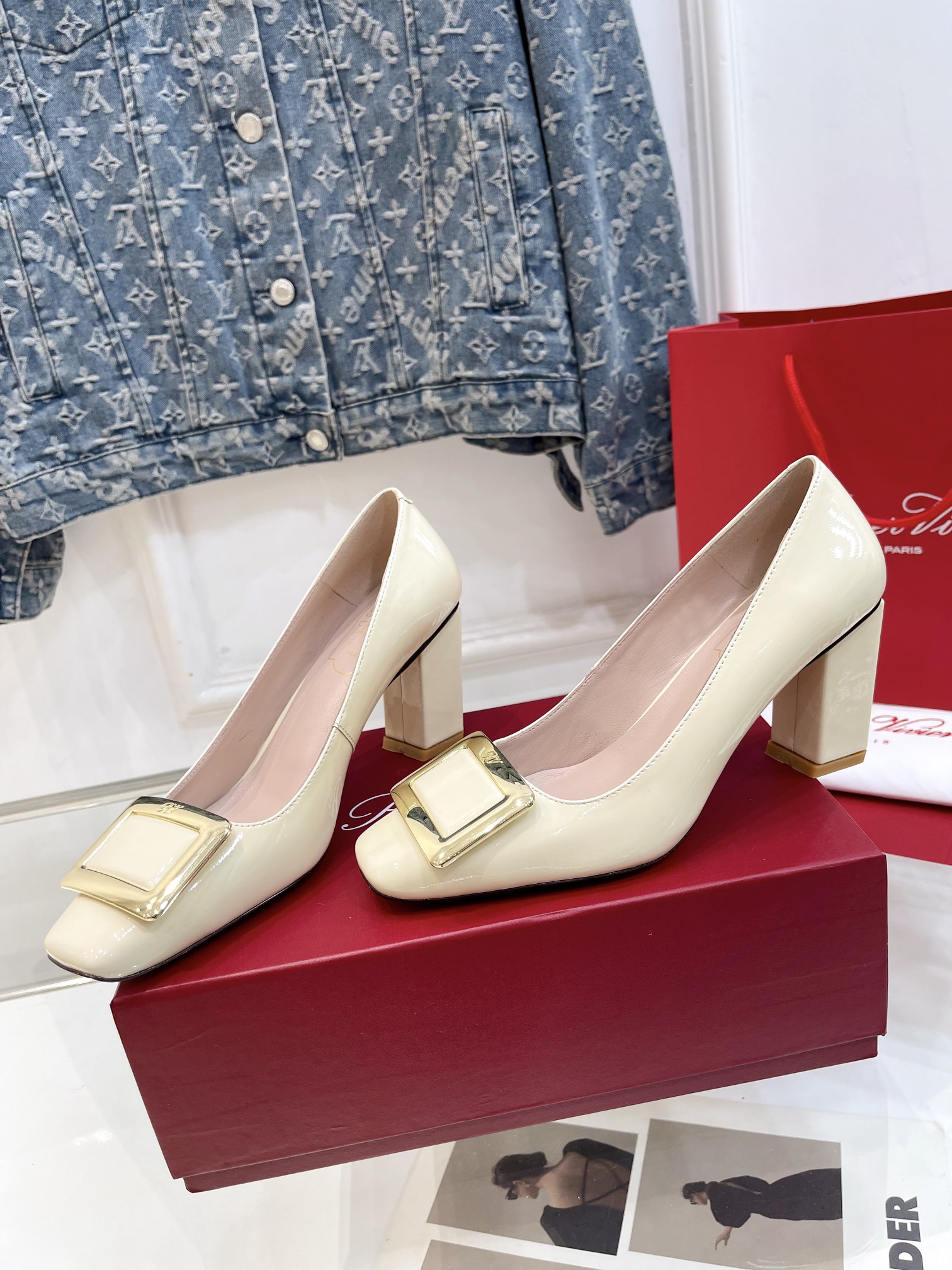 这款鞋子是AAAAA 1:1 质量 (非常棒). 使用了和原版一模一样的材料. 商标部分也保持了和罗杰维维耶/Roger Vivier一样. 图片拍摄是实物鞋子拍摄, 您所收到的实物保证和我们图片一模一样.