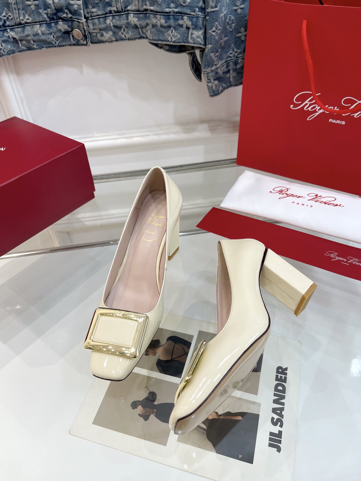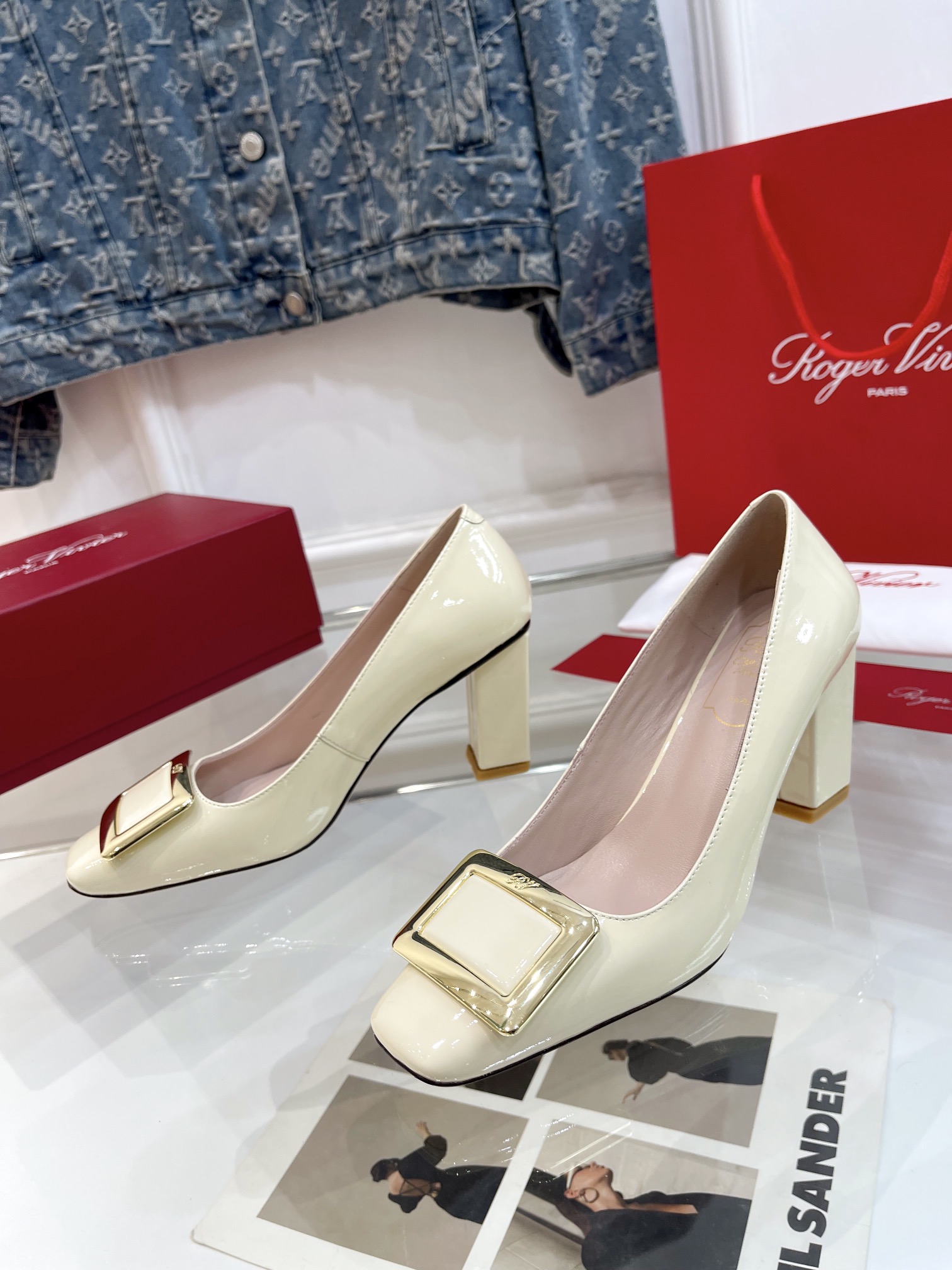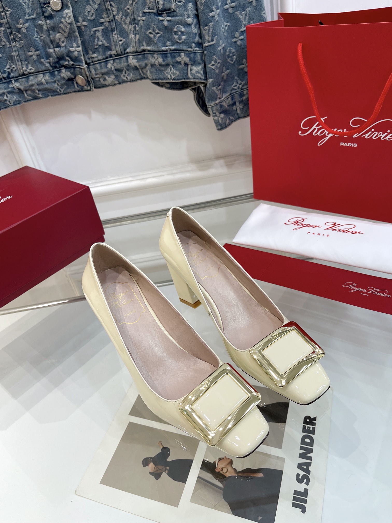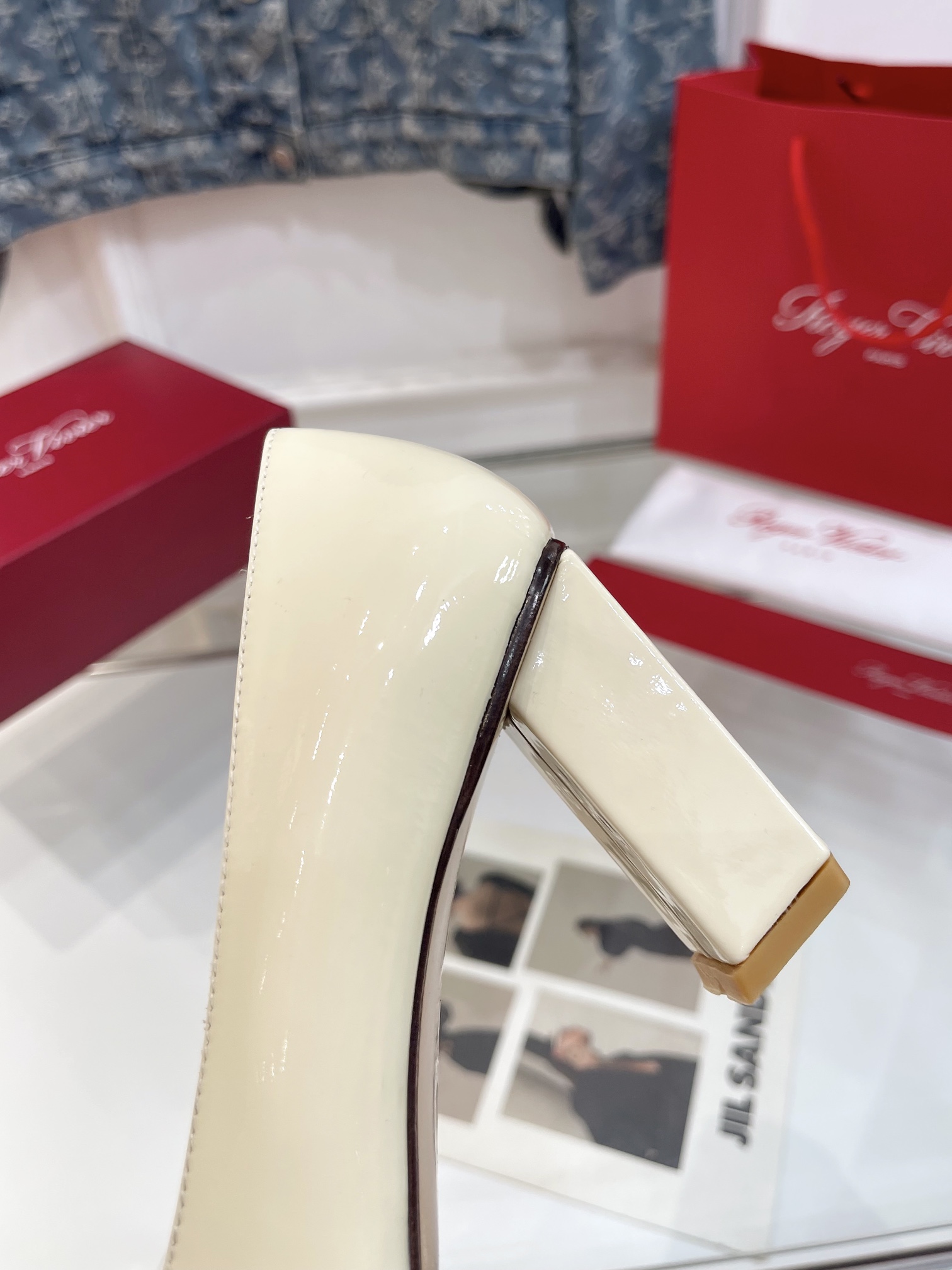 这款鞋子是AAAAA 1:1 质量 (非常棒). 使用了和原版一模一样的材料. 商标部分也保持了和罗杰维维耶/Roger Vivier一样. 图片拍摄是实物鞋子拍摄, 您所收到的实物保证和我们图片一模一样.