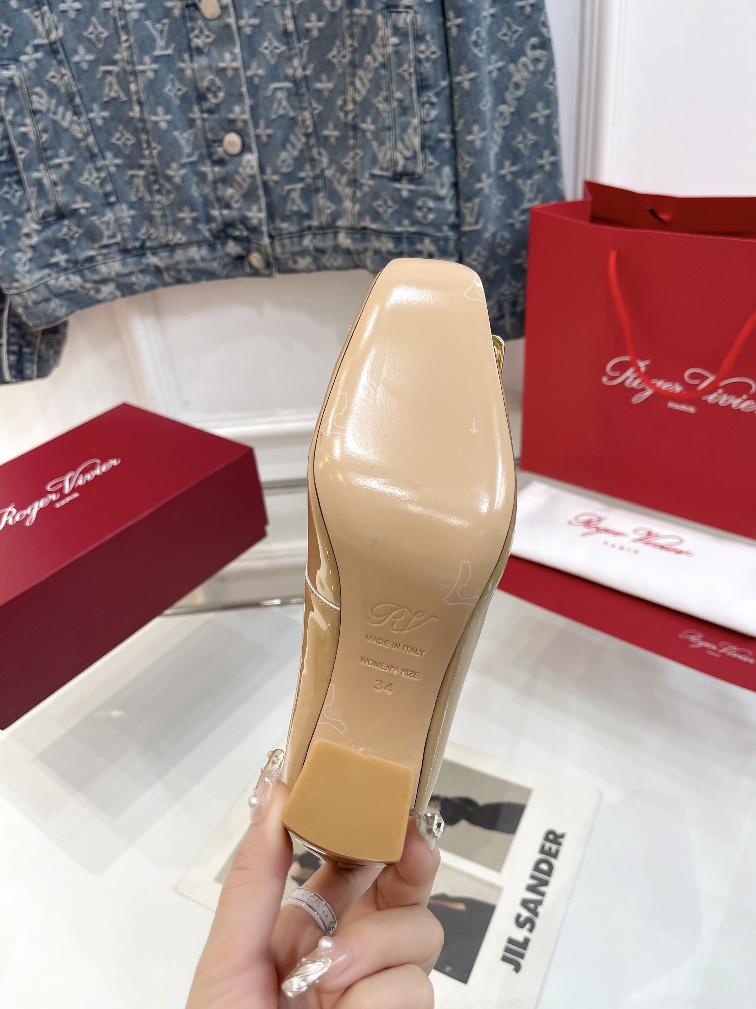 这款鞋子是AAAAA 1:1 质量 (非常棒). 使用了和原版一模一样的材料. 商标部分也保持了和罗杰维维耶/Roger Vivier一样. 图片拍摄是实物鞋子拍摄, 您所收到的实物保证和我们图片一模一样.