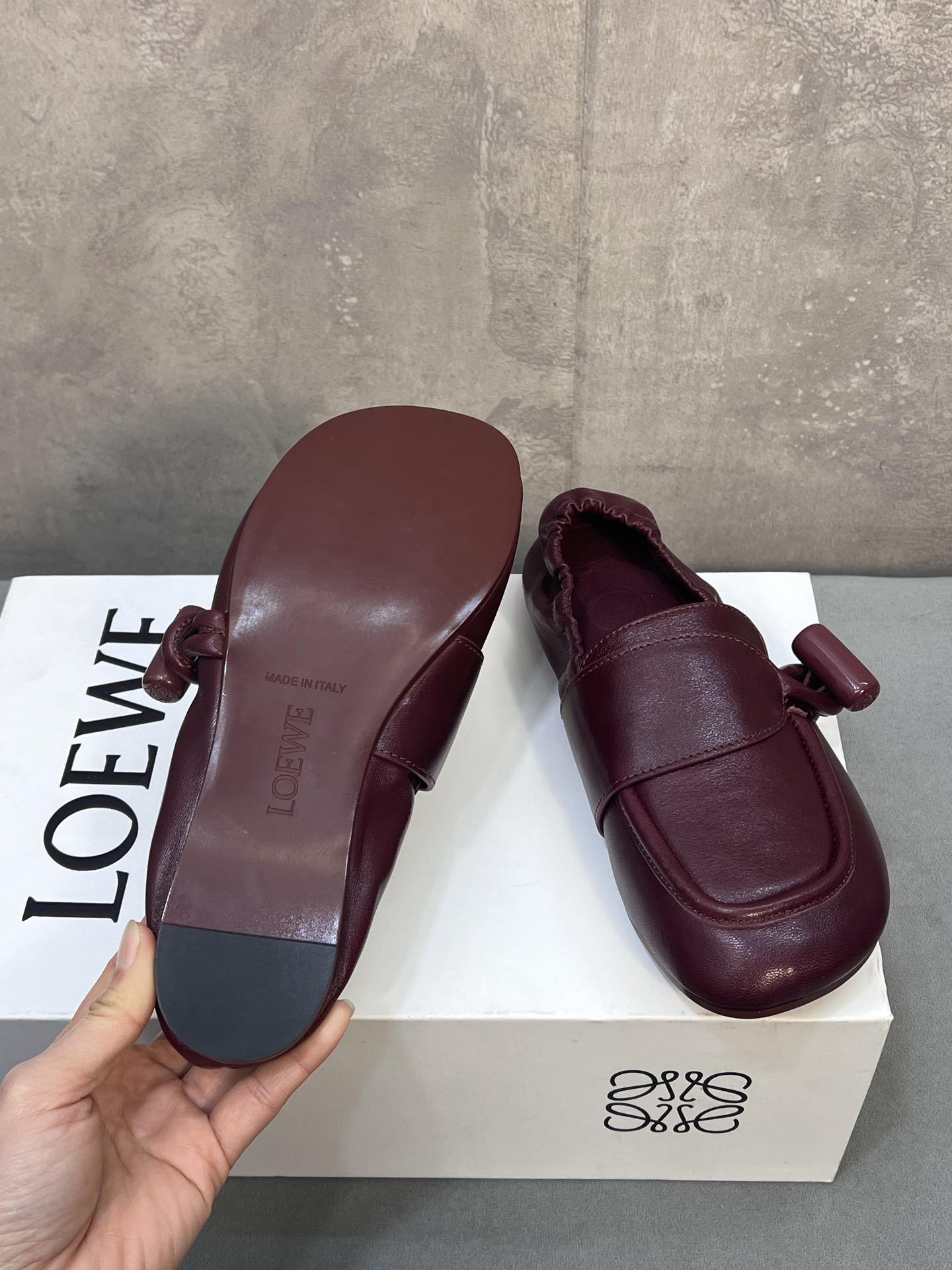 这款鞋子是AAAAA 1:1 质量 (非常棒). 使用了和原版一模一样的材料. 商标部分也保持了和罗意威/Loewe一样. 图片拍摄是实物鞋子拍摄, 您所收到的实物保证和我们图片一模一样.