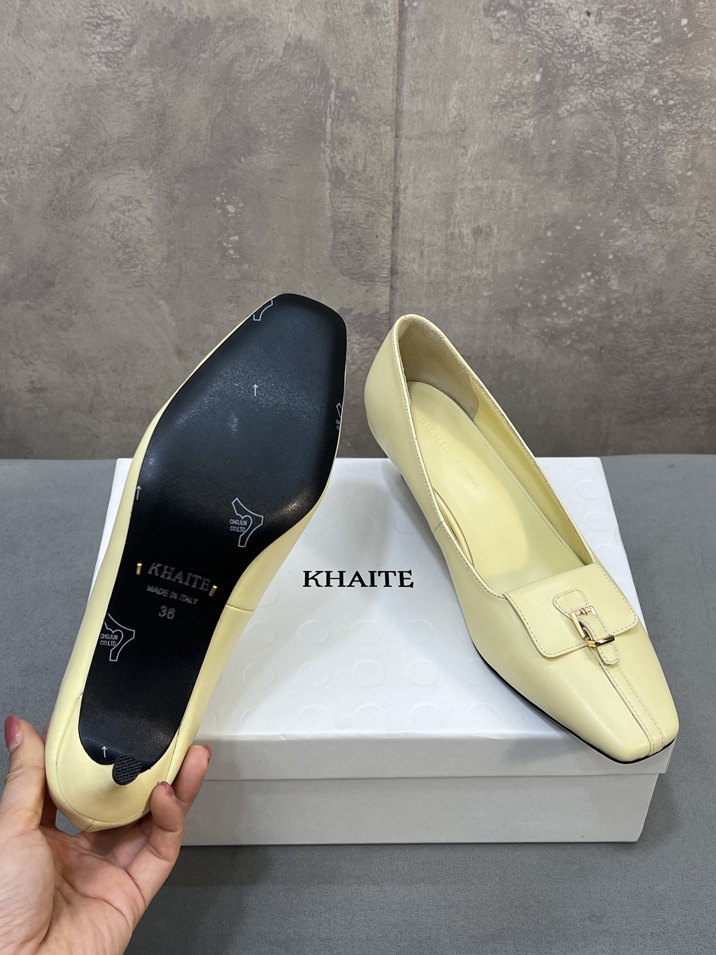 这款鞋子是AAAAA 1:1 质量 (非常棒). 使用了和原版一模一样的材料. 商标部分也保持了和Khaite一样. 图片拍摄是实物鞋子拍摄, 您所收到的实物保证和我们图片一模一样.