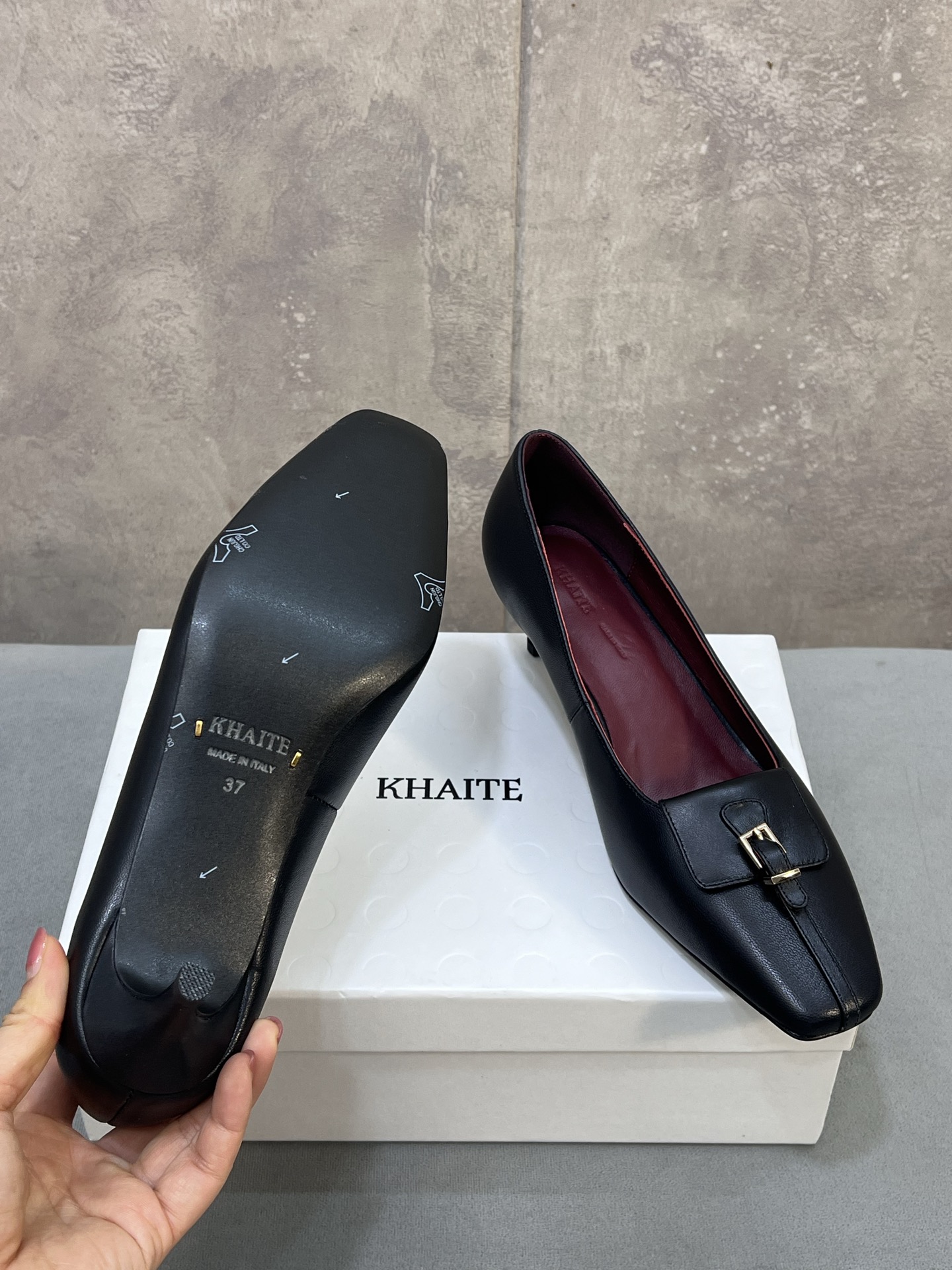 这款鞋子是AAAAA 1:1 质量 (非常棒). 使用了和原版一模一样的材料. 商标部分也保持了和Khaite一样. 图片拍摄是实物鞋子拍摄, 您所收到的实物保证和我们图片一模一样.