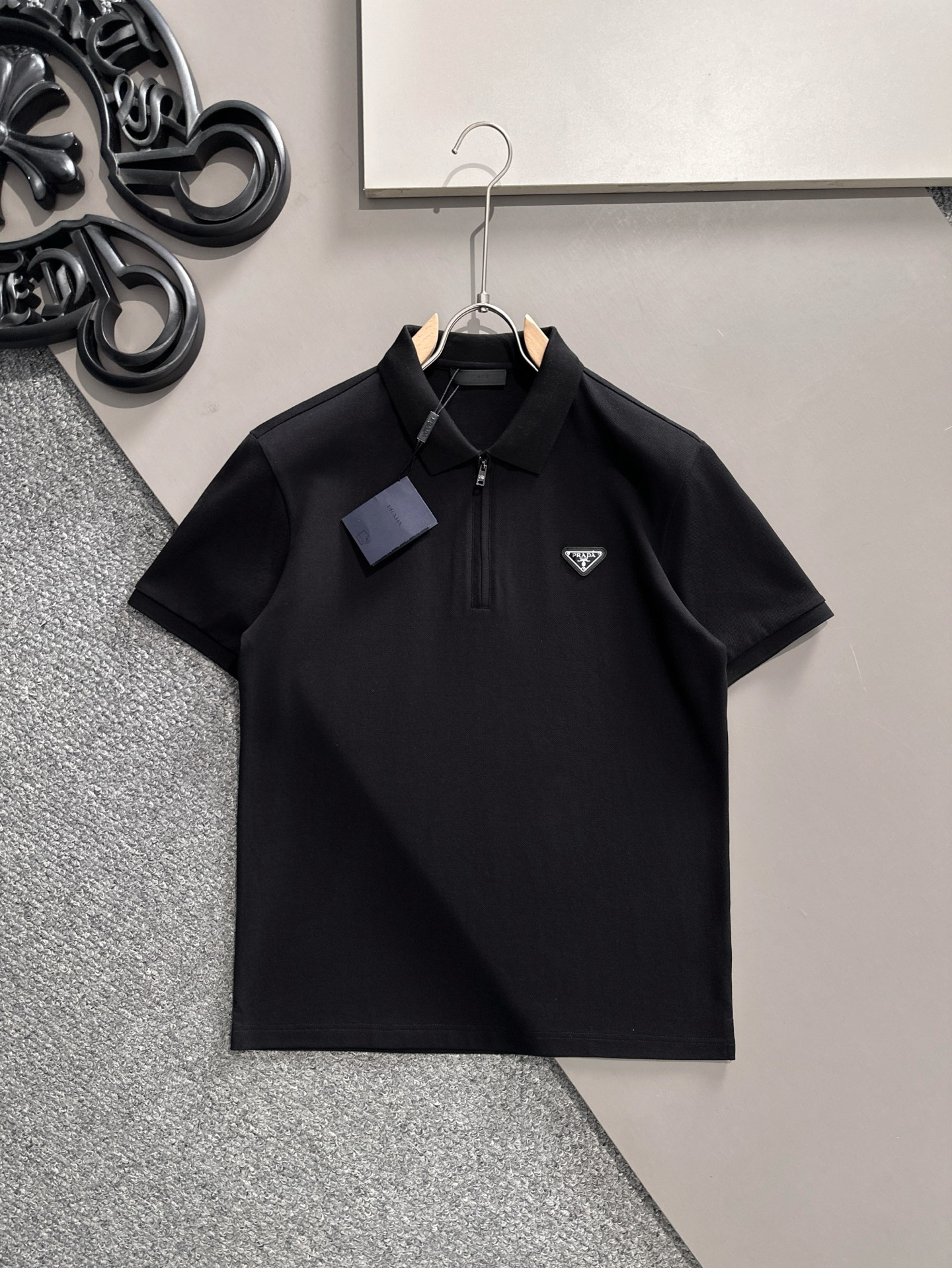 这款衣服是AAAAA 1:1 质量 (非常棒). 使用了和原版一模一样的材料. 商标部分也保持了和普拉达/Prada一样. 图片拍摄是实物衣服拍摄, 您所收到的实物保证和我们图片一模一样.