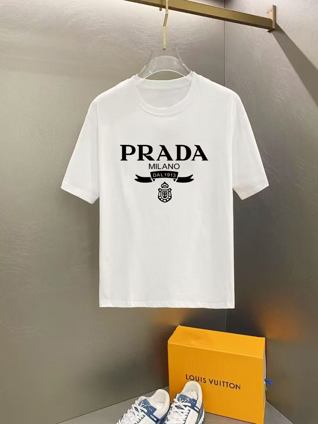 这款衣服是AAAAA 1:1 质量 (非常棒). 使用了和原版一模一样的材料. 商标部分也保持了和普拉达/Prada一样. 图片拍摄是实物衣服拍摄, 您所收到的实物保证和我们图片一模一样.
