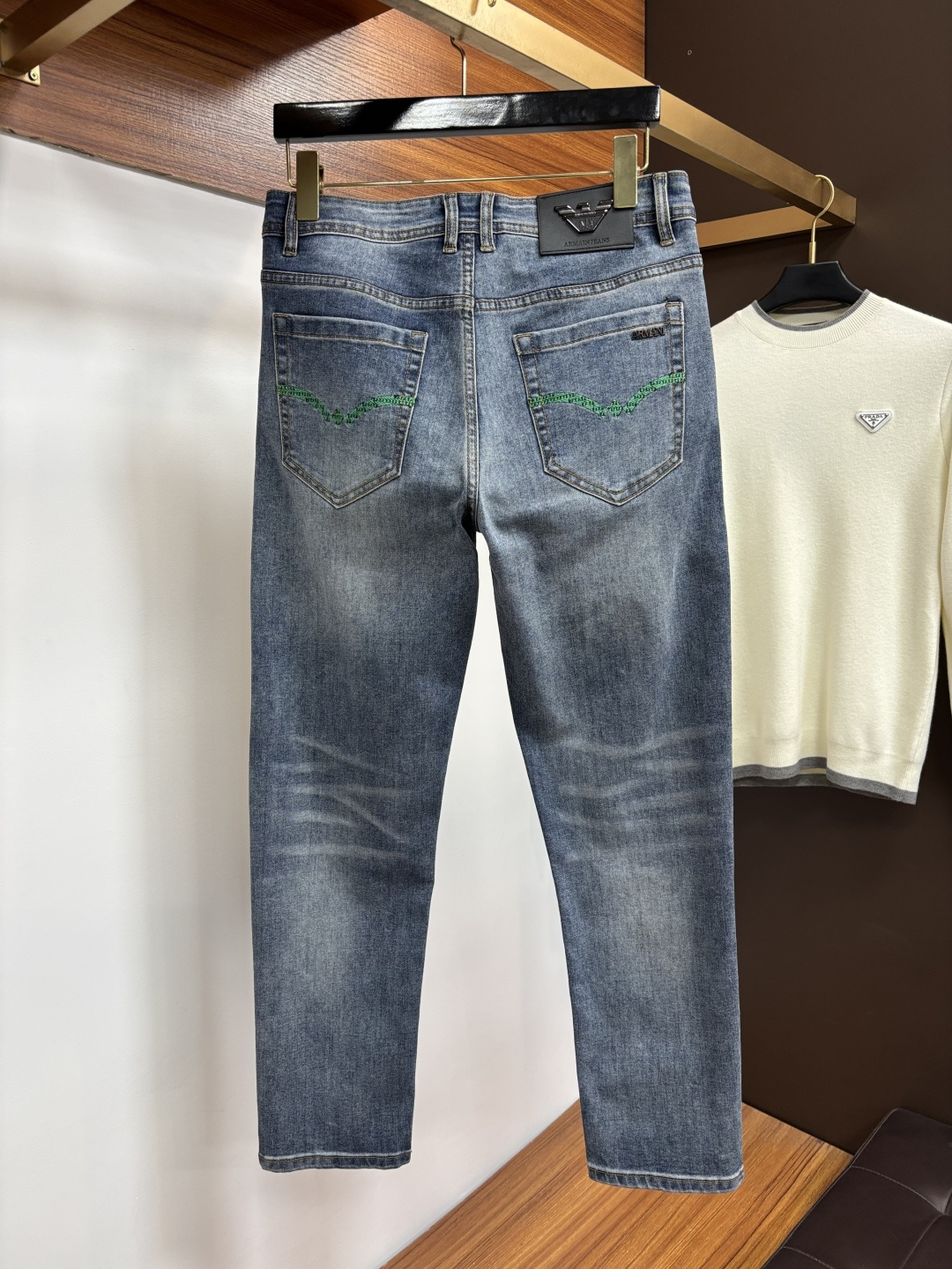 这款衣服是AAAAA 1:1 质量 (非常棒). 使用了和原版一模一样的材料. 商标部分也保持了和阿玛尼/Armani一样. 图片拍摄是实物衣服拍摄, 您所收到的实物保证和我们图片一模一样.