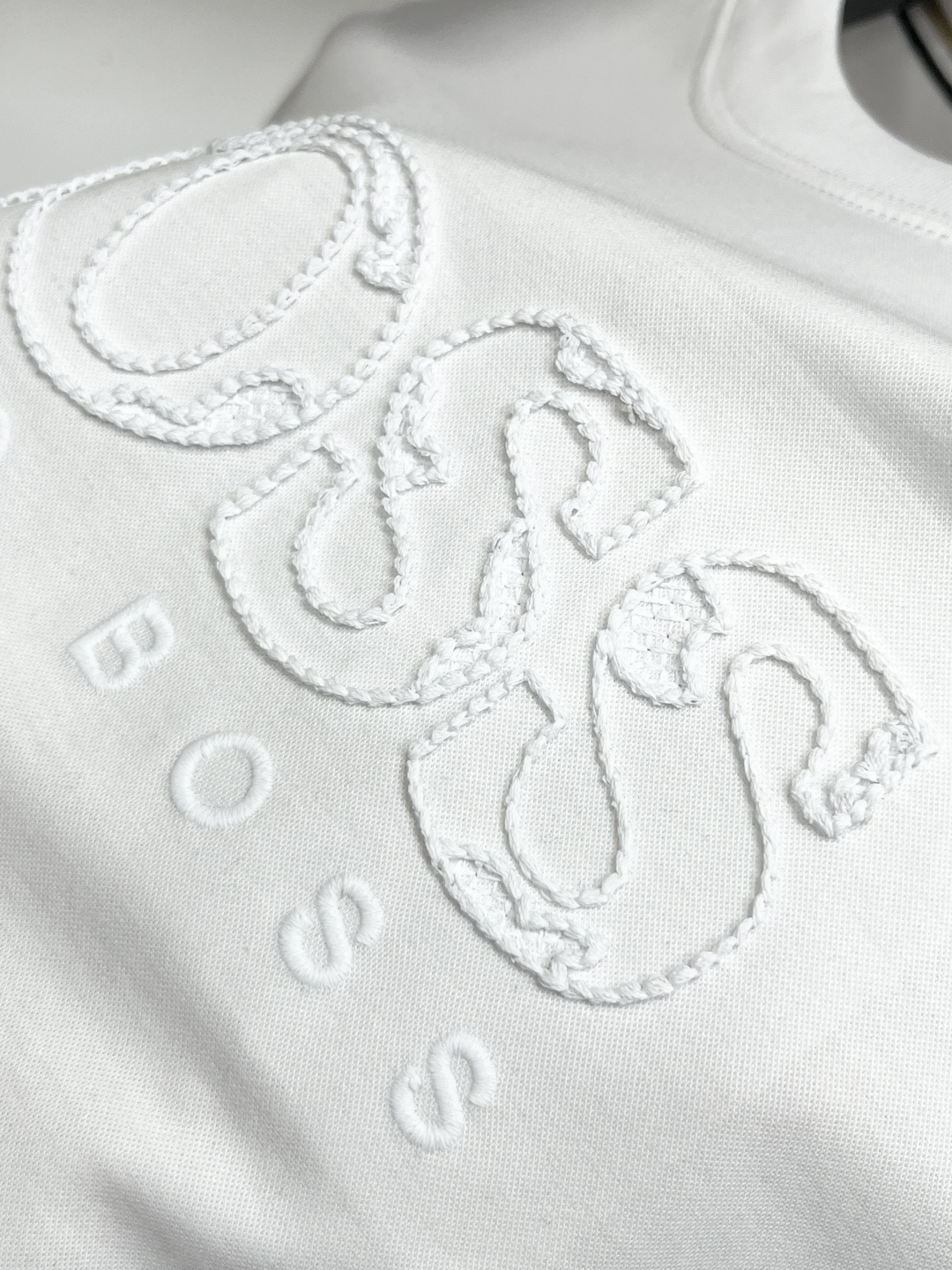 这款衣服是AAAAA 1:1 质量 (非常棒). 使用了和原版一模一样的材料. 商标部分也保持了和BOSS一样. 图片拍摄是实物衣服拍摄, 您所收到的实物保证和我们图片一模一样.