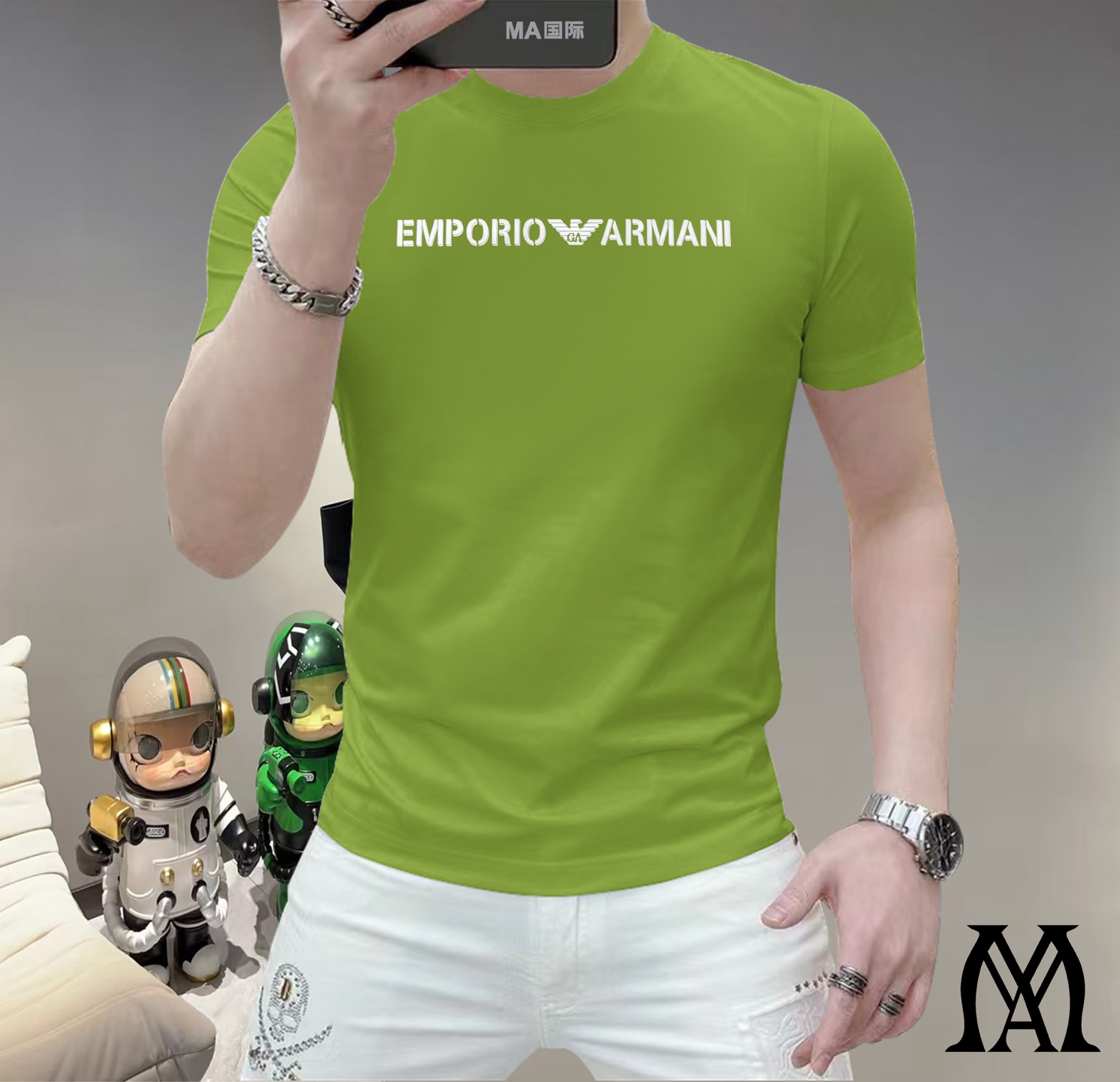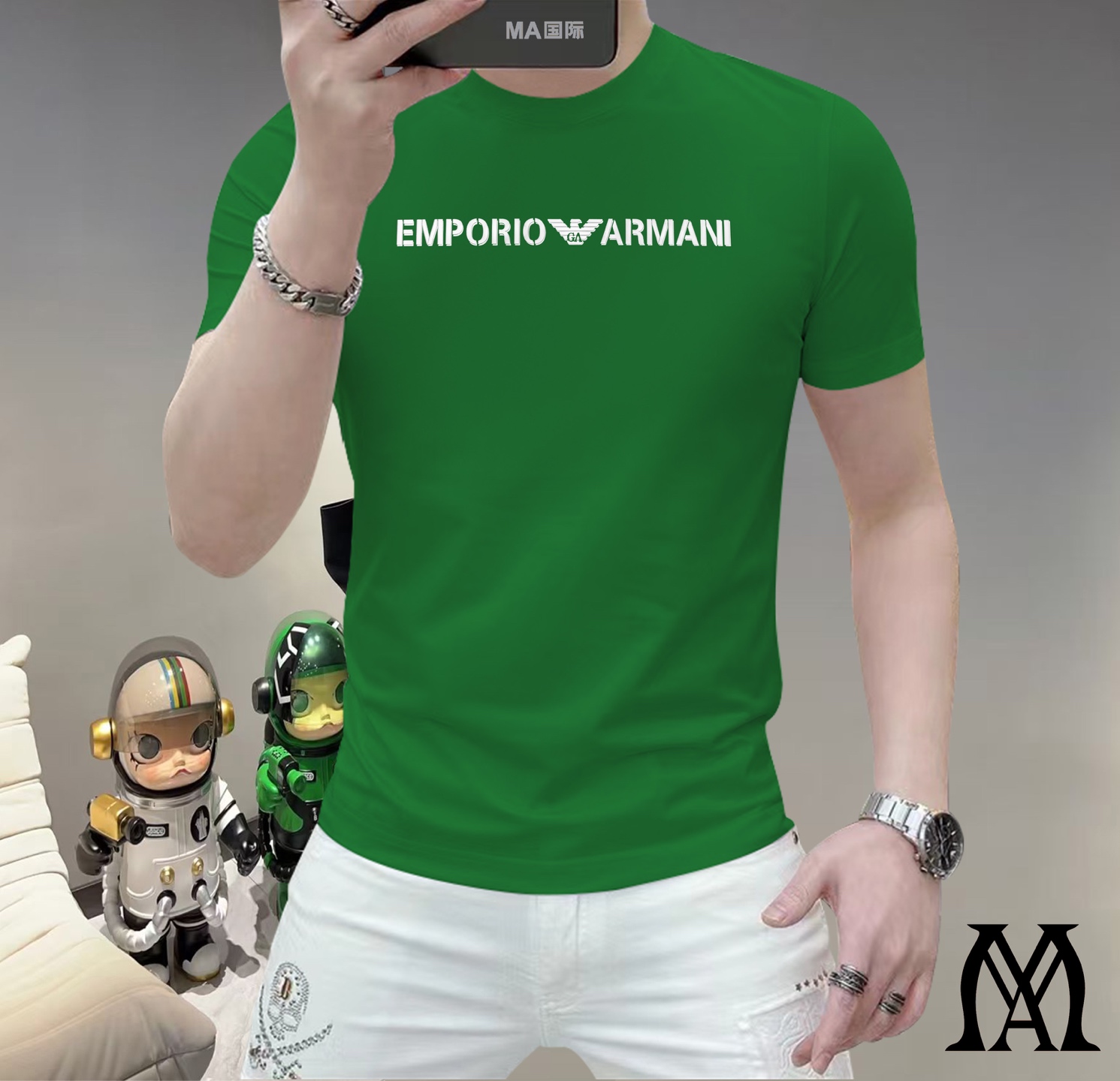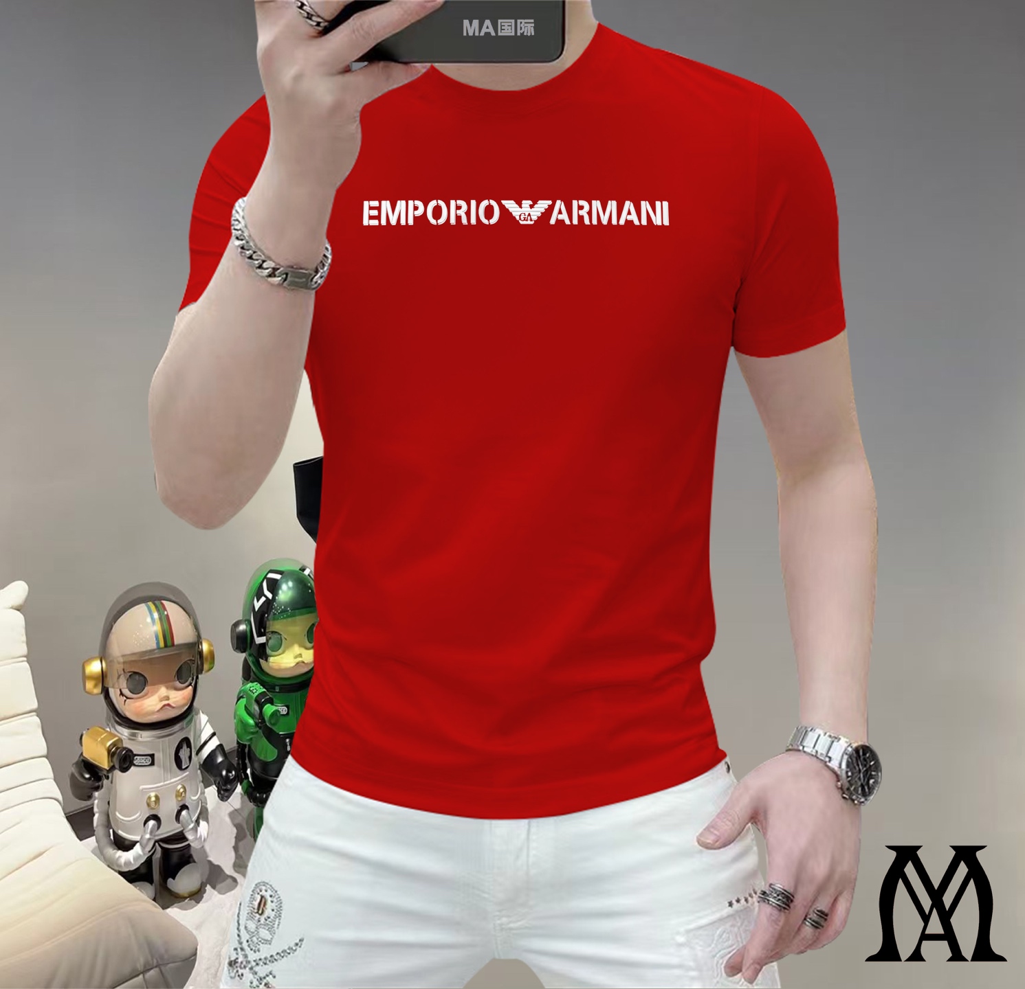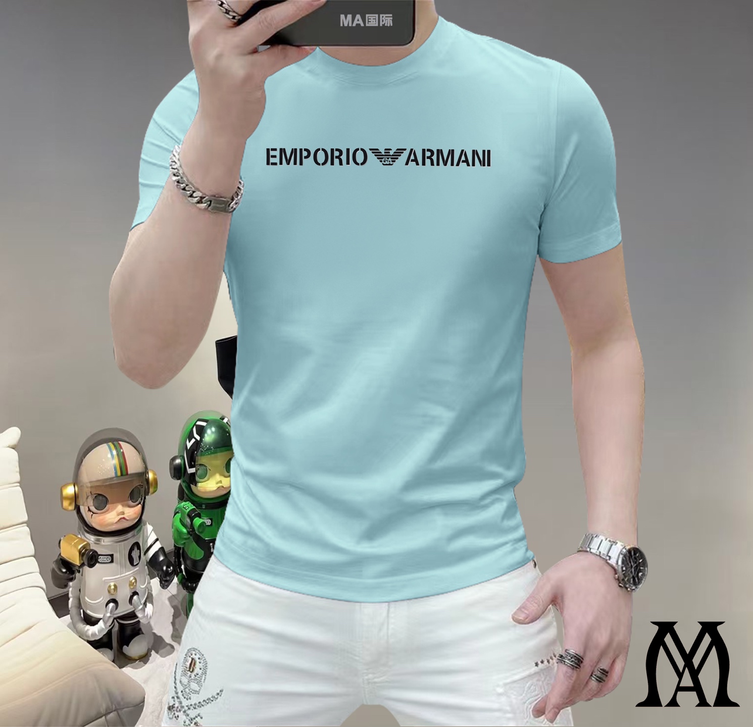 这款衣服是AAAAA 1:1 质量 (非常棒). 使用了和原版一模一样的材料. 商标部分也保持了和阿玛尼/Armani一样. 图片拍摄是实物衣服拍摄, 您所收到的实物保证和我们图片一模一样.