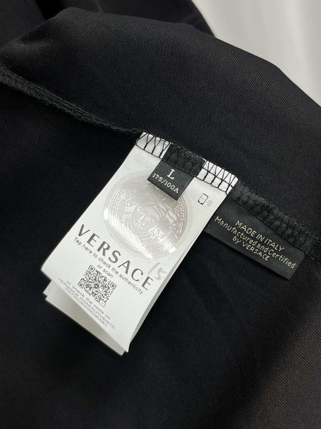 这款衣服是AAAAA 1:1 质量 (非常棒). 使用了和原版一模一样的材料. 商标部分也保持了和范思哲/Versace一样. 图片拍摄是实物衣服拍摄, 您所收到的实物保证和我们图片一模一样.