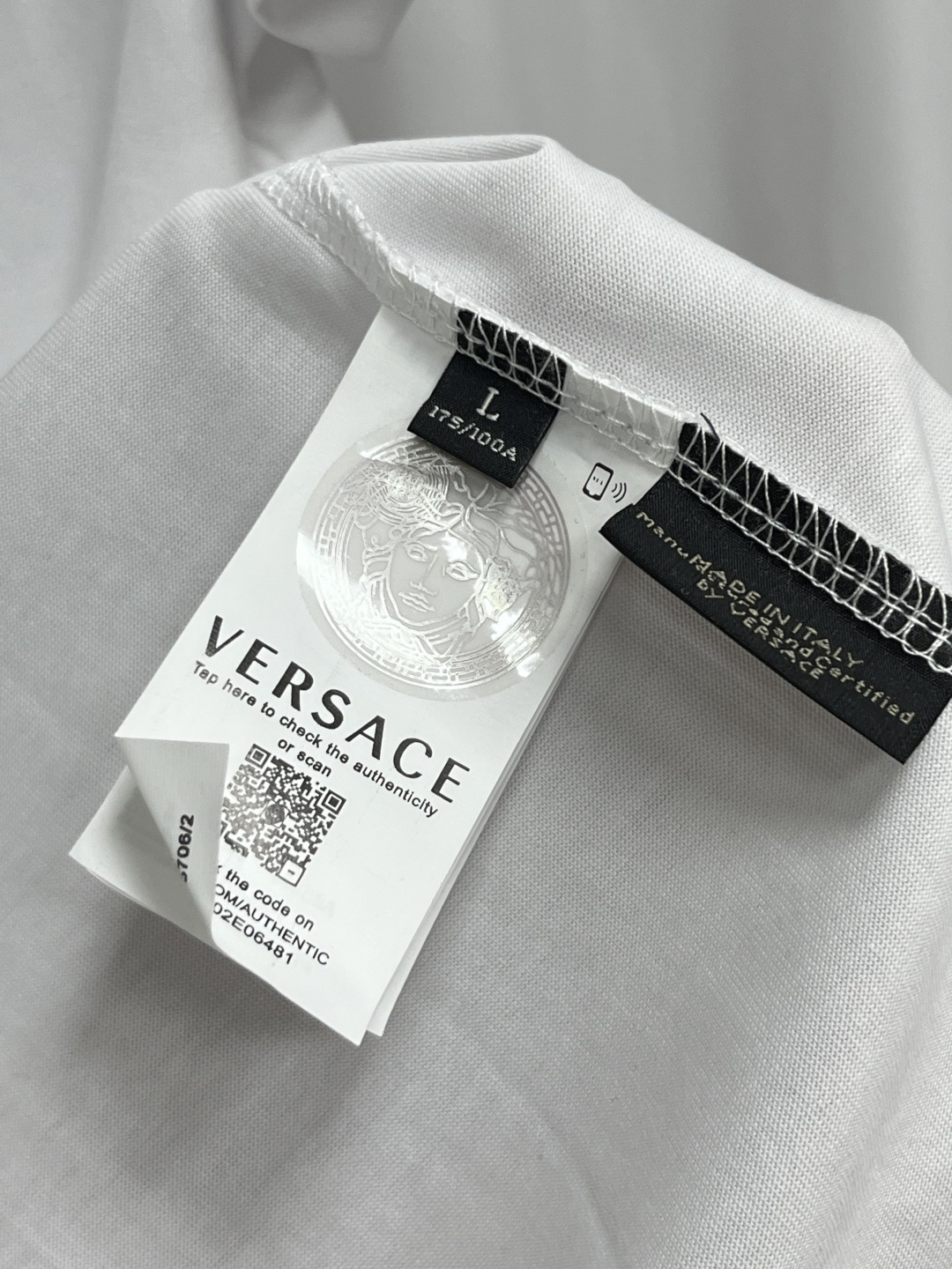 这款衣服是AAAAA 1:1 质量 (非常棒). 使用了和原版一模一样的材料. 商标部分也保持了和范思哲/Versace一样. 图片拍摄是实物衣服拍摄, 您所收到的实物保证和我们图片一模一样.