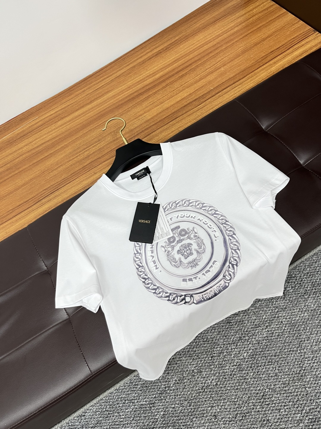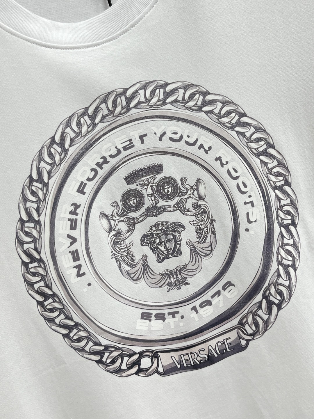 这款衣服是AAAAA 1:1 质量 (非常棒). 使用了和原版一模一样的材料. 商标部分也保持了和范思哲/Versace一样. 图片拍摄是实物衣服拍摄, 您所收到的实物保证和我们图片一模一样.