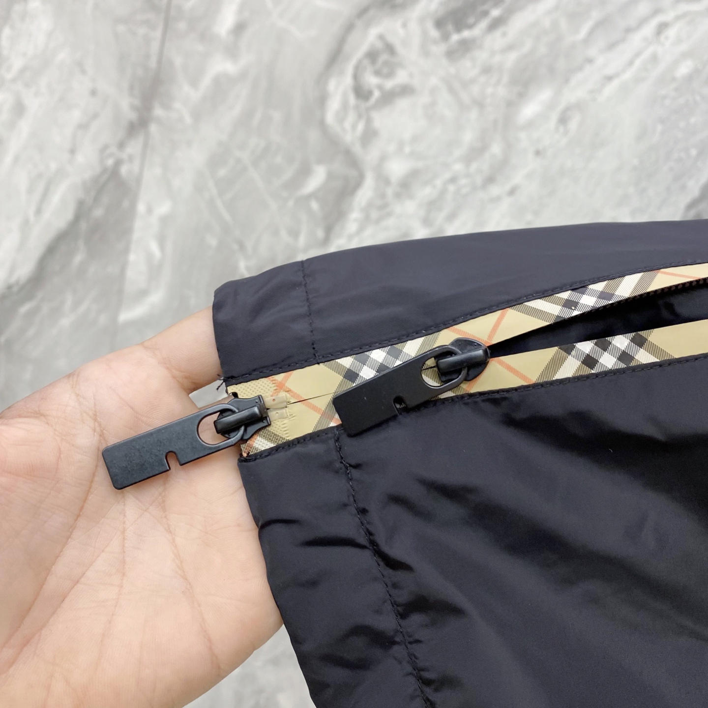 这款衣服是AAAAA 1:1 质量 (非常棒). 使用了和原版一模一样的材料. 商标部分也保持了和巴宝莉/Burberry一样. 图片拍摄是实物衣服拍摄, 您所收到的实物保证和我们图片一模一样.