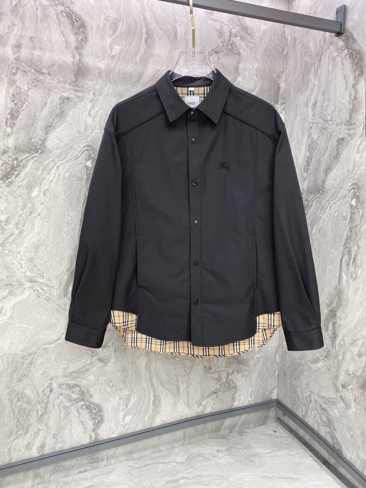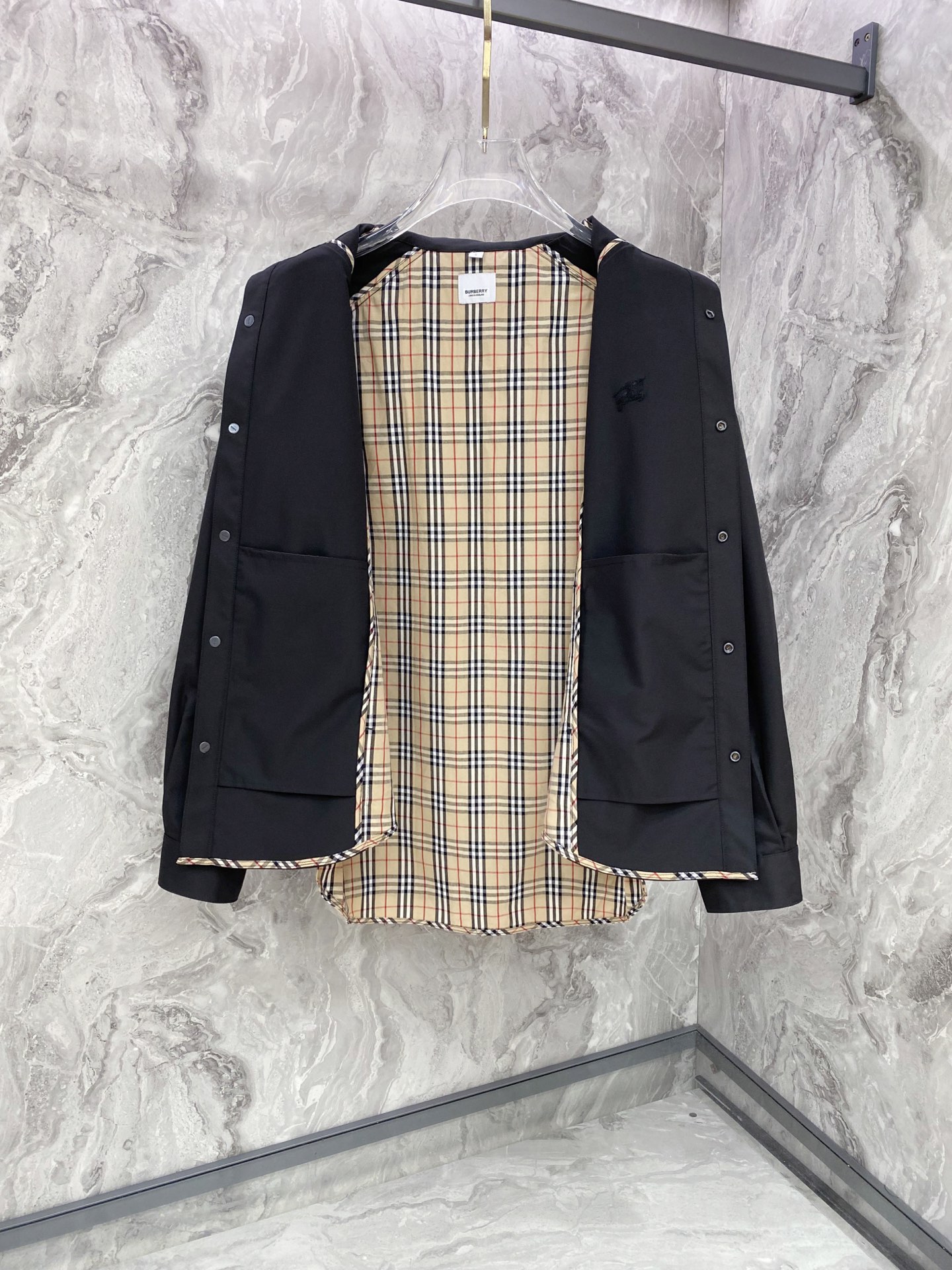 这款衣服是AAAAA 1:1 质量 (非常棒). 使用了和原版一模一样的材料. 商标部分也保持了和巴宝莉/Burberry一样. 图片拍摄是实物衣服拍摄, 您所收到的实物保证和我们图片一模一样.