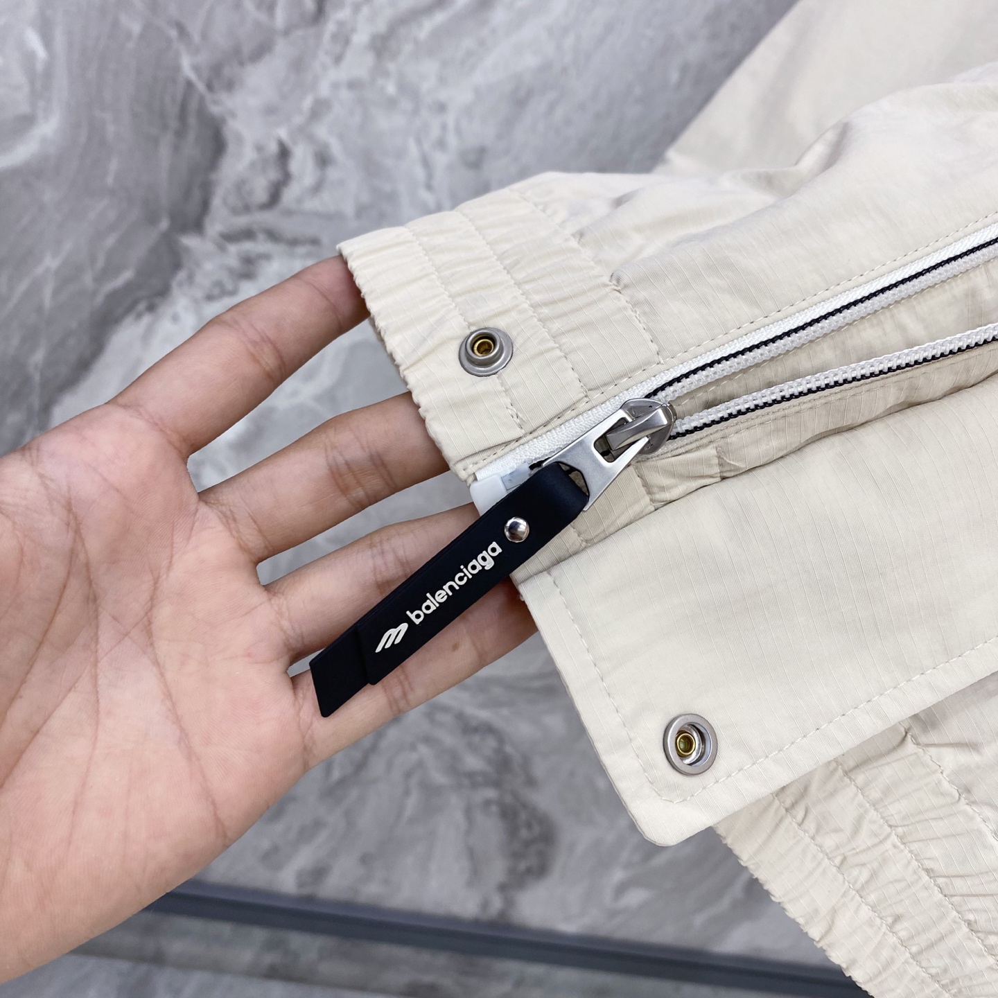 这款衣服是AAAAA 1:1 质量 (非常棒). 使用了和原版一模一样的材料. 商标部分也保持了和巴黎世家/Balenciaga一样. 图片拍摄是实物衣服拍摄, 您所收到的实物保证和我们图片一模一样.