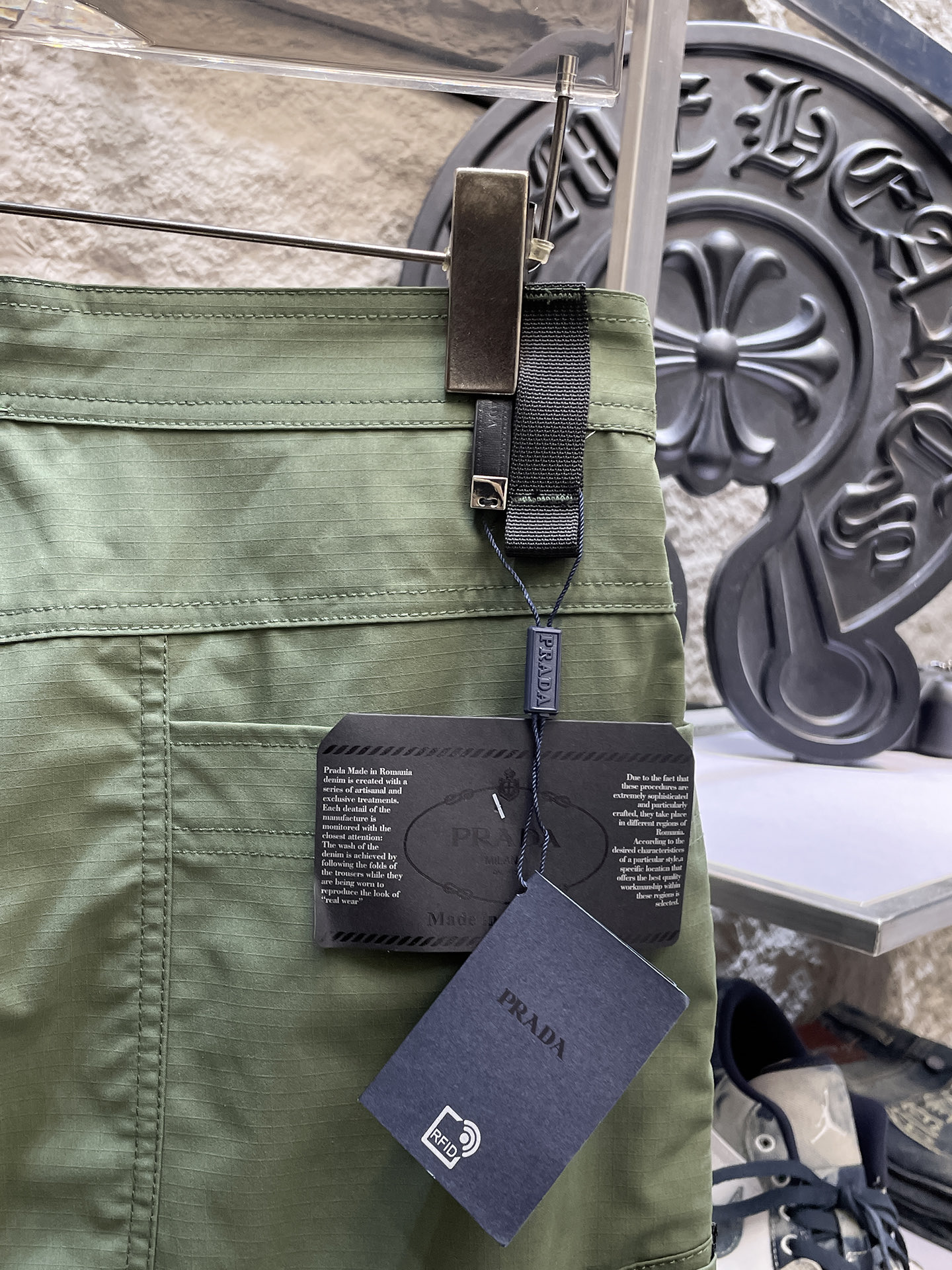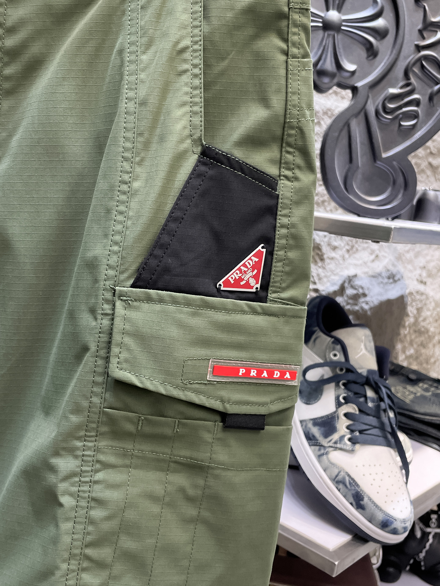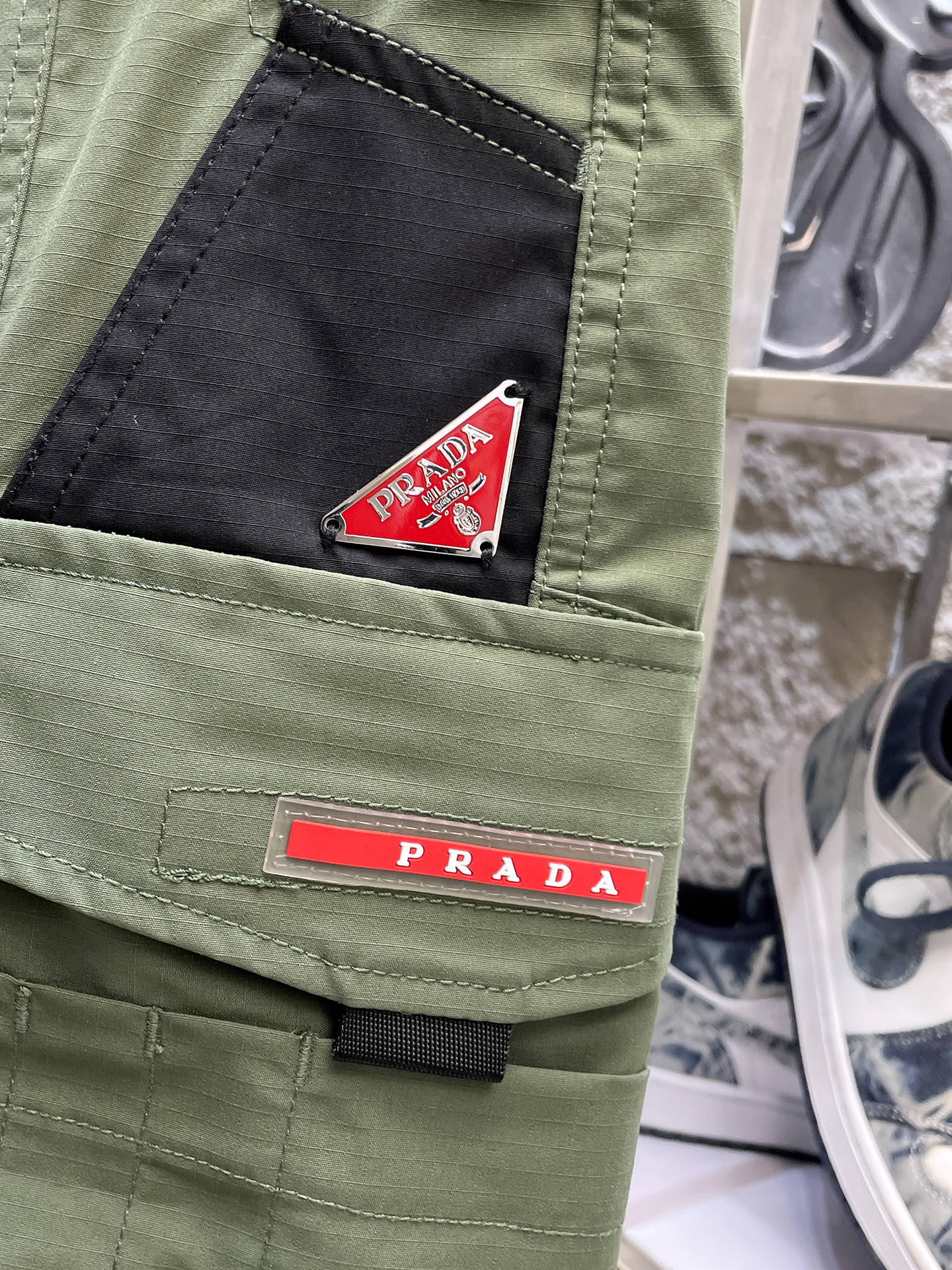 这款衣服是AAAAA 1:1 质量 (非常棒). 使用了和原版一模一样的材料. 商标部分也保持了和普拉达/Prada一样. 图片拍摄是实物衣服拍摄, 您所收到的实物保证和我们图片一模一样.