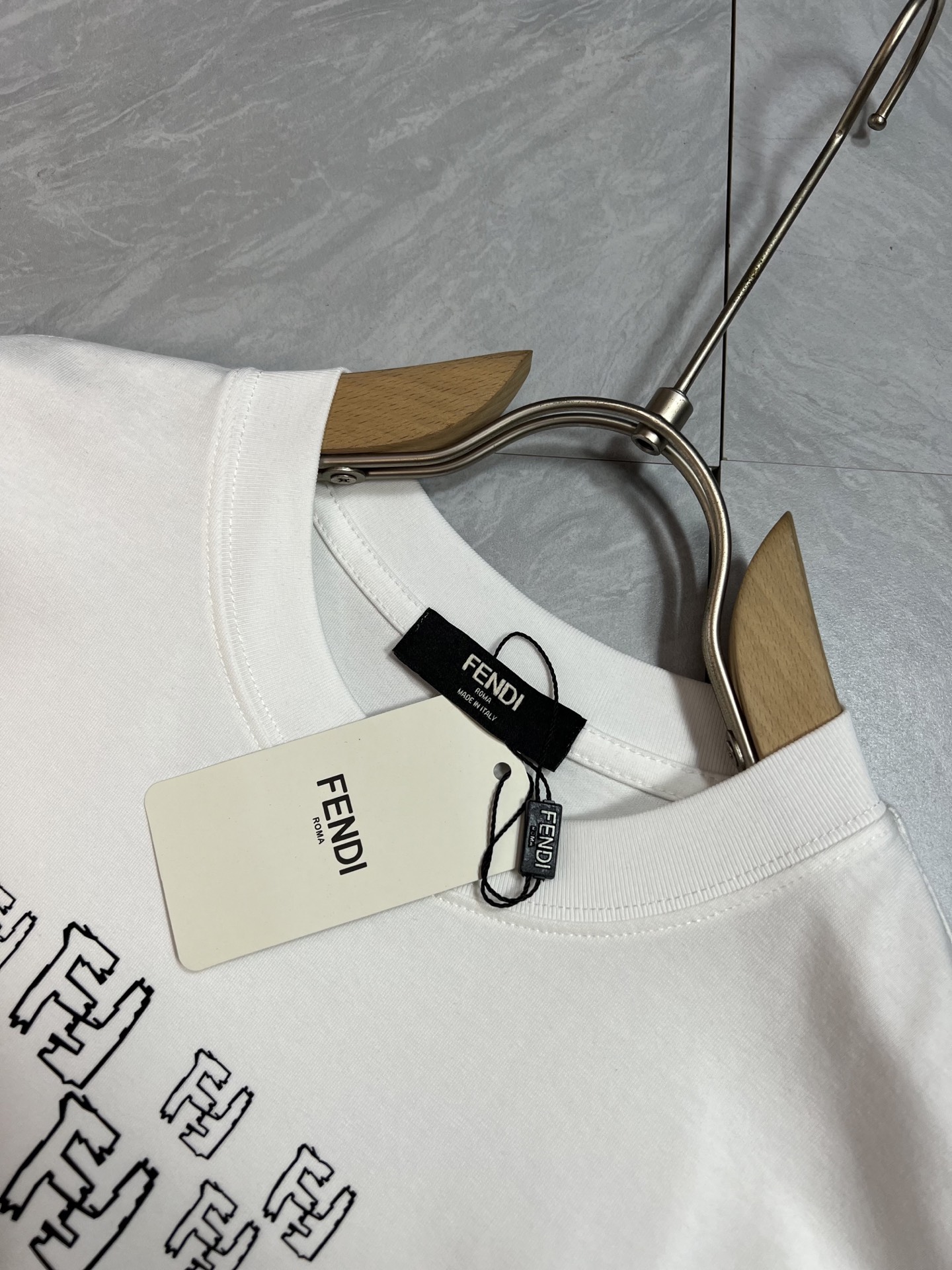 这款衣服是AAAAA 1:1 质量 (非常棒). 使用了和原版一模一样的材料. 商标部分也保持了和芬迪/Fendi一样. 图片拍摄是实物衣服拍摄, 您所收到的实物保证和我们图片一模一样.
