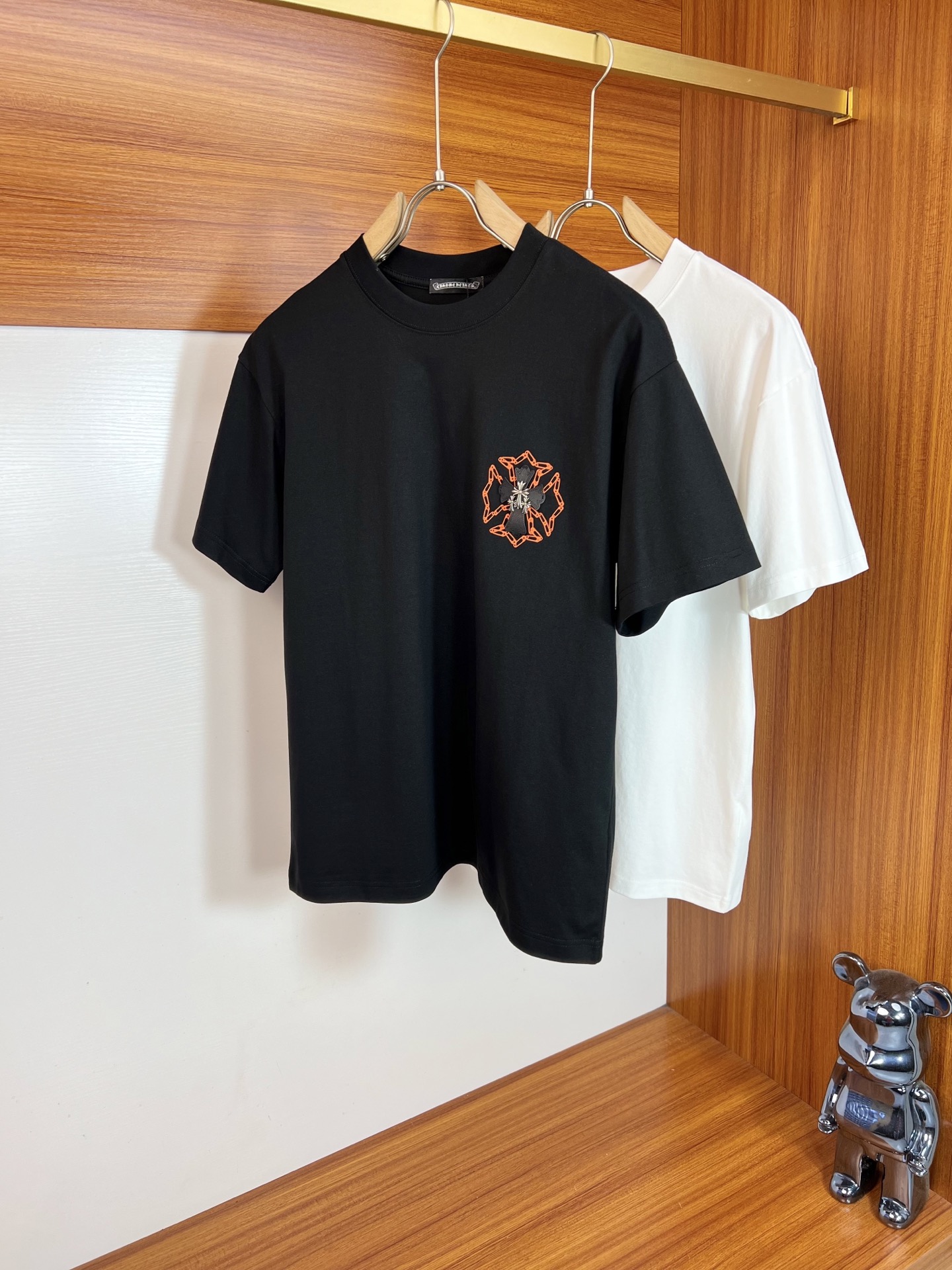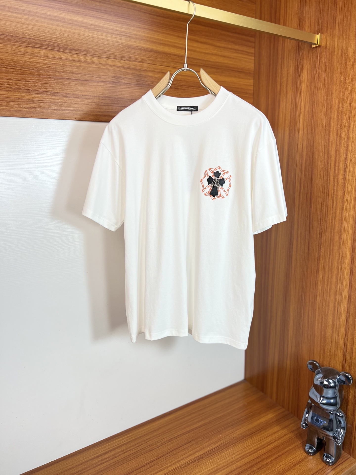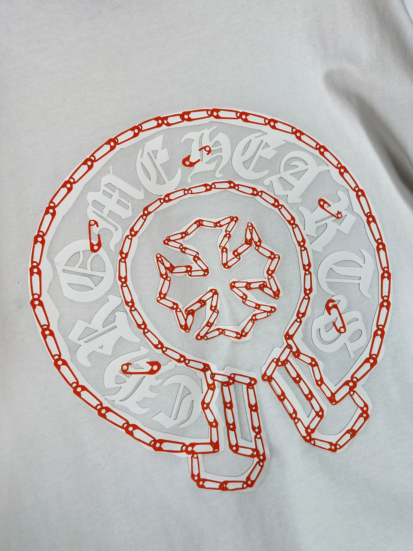 这款衣服是AAAAA 1:1 质量 (非常棒). 使用了和原版一模一样的材料. 商标部分也保持了和克罗心/Chrome Hearts一样. 图片拍摄是实物衣服拍摄, 您所收到的实物保证和我们图片一模一样.