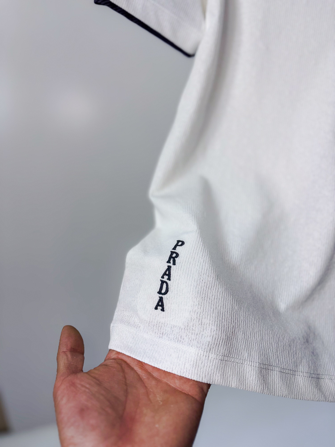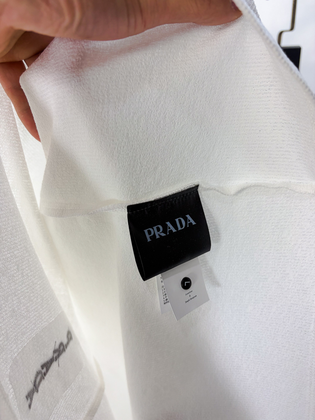 这款衣服是AAAAA 1:1 质量 (非常棒). 使用了和原版一模一样的材料. 商标部分也保持了和普拉达/Prada一样. 图片拍摄是实物衣服拍摄, 您所收到的实物保证和我们图片一模一样.