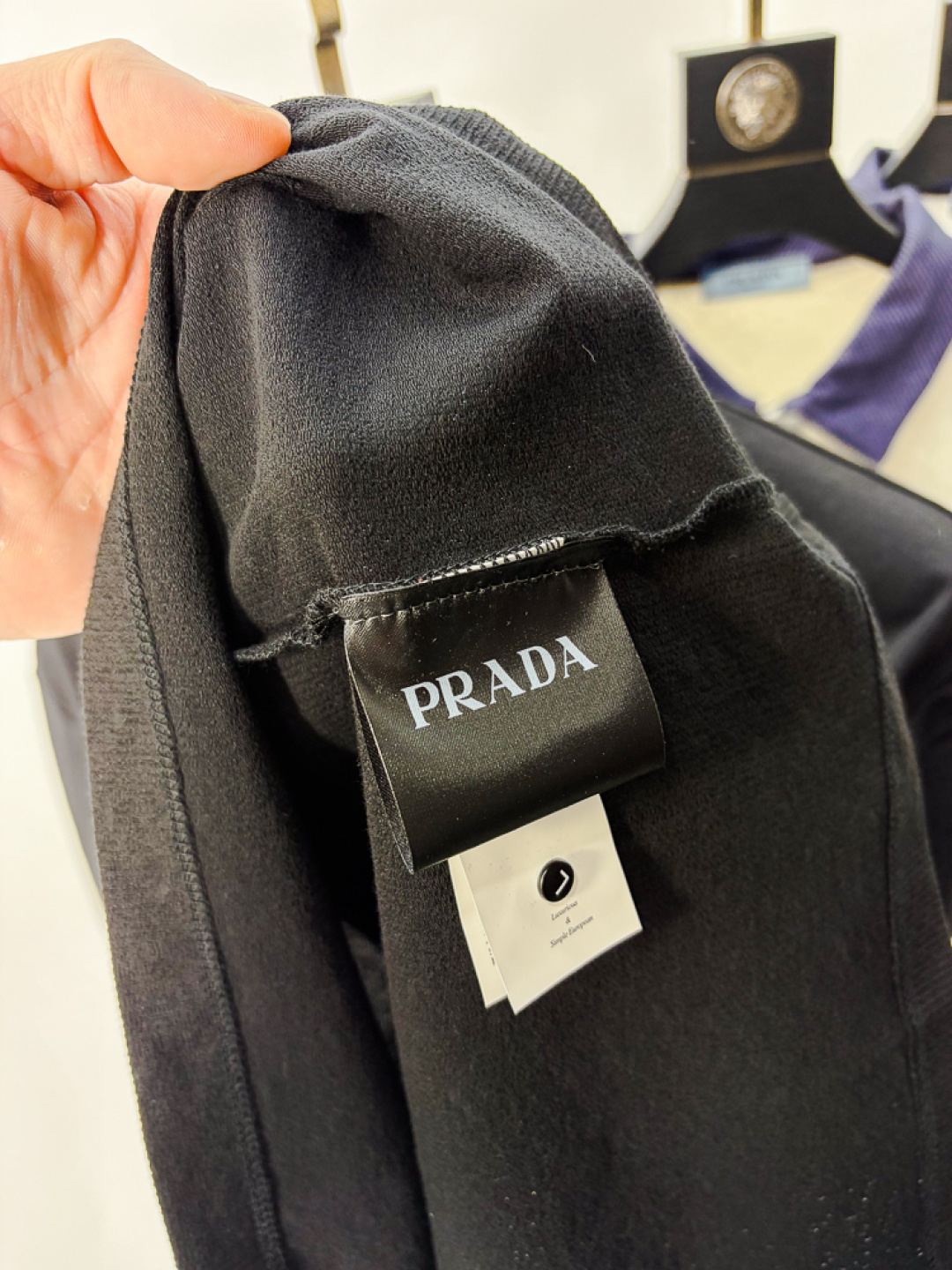 这款衣服是AAAAA 1:1 质量 (非常棒). 使用了和原版一模一样的材料. 商标部分也保持了和普拉达/Prada一样. 图片拍摄是实物衣服拍摄, 您所收到的实物保证和我们图片一模一样.