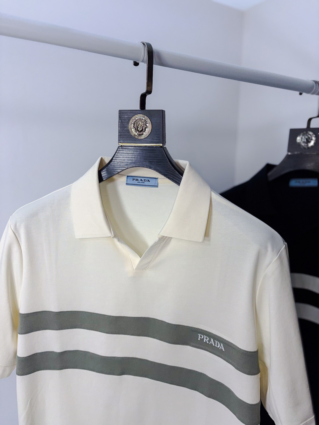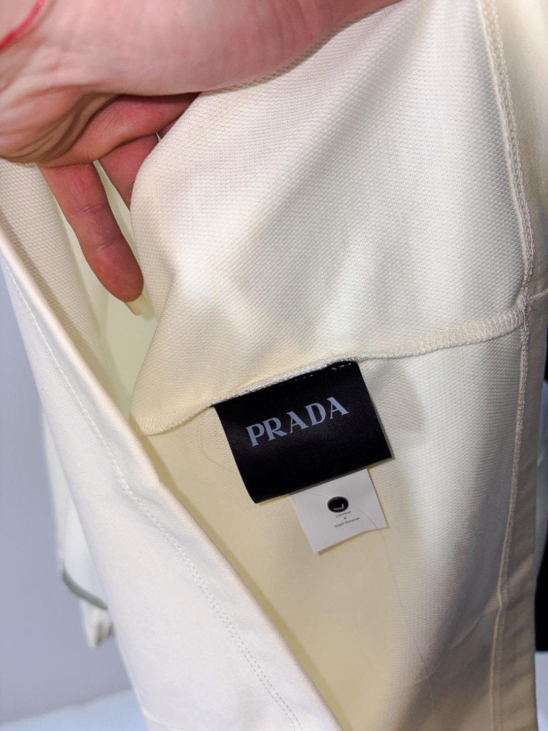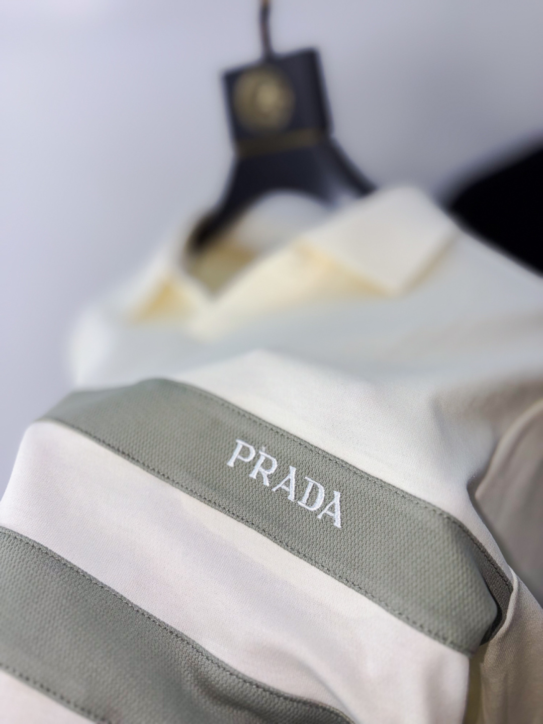 这款衣服是AAAAA 1:1 质量 (非常棒). 使用了和原版一模一样的材料. 商标部分也保持了和普拉达/Prada一样. 图片拍摄是实物衣服拍摄, 您所收到的实物保证和我们图片一模一样.