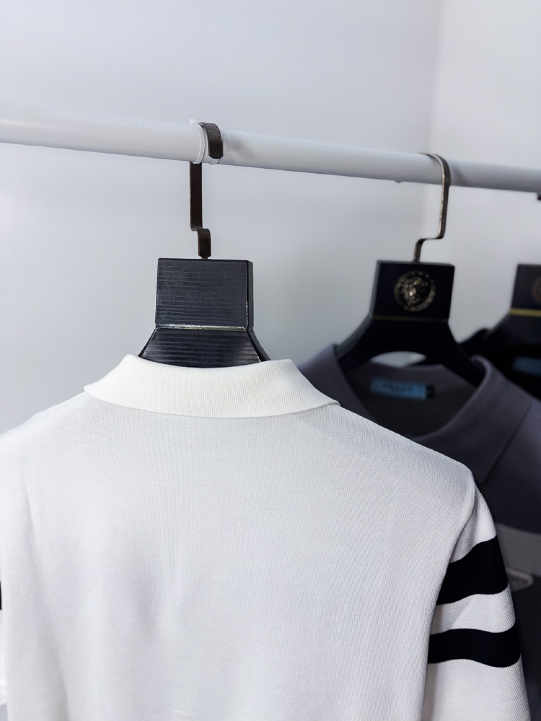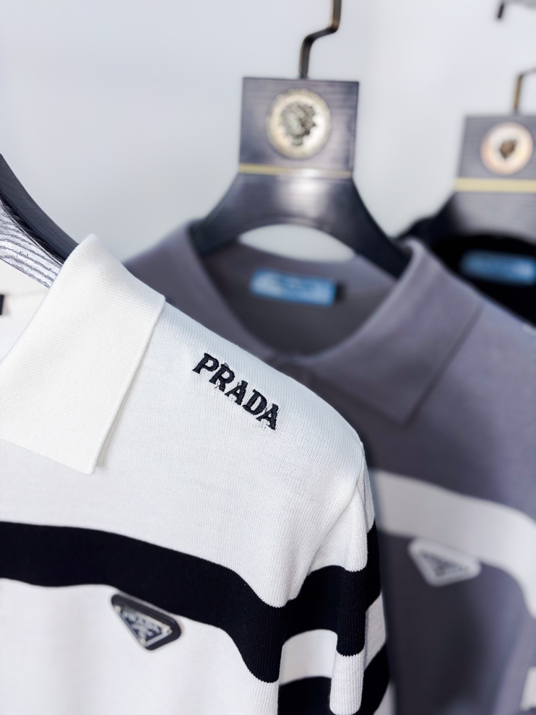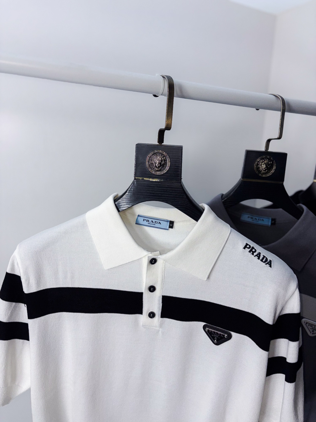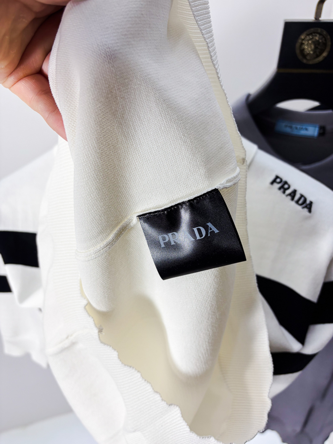 这款衣服是AAAAA 1:1 质量 (非常棒). 使用了和原版一模一样的材料. 商标部分也保持了和普拉达/Prada一样. 图片拍摄是实物衣服拍摄, 您所收到的实物保证和我们图片一模一样.
