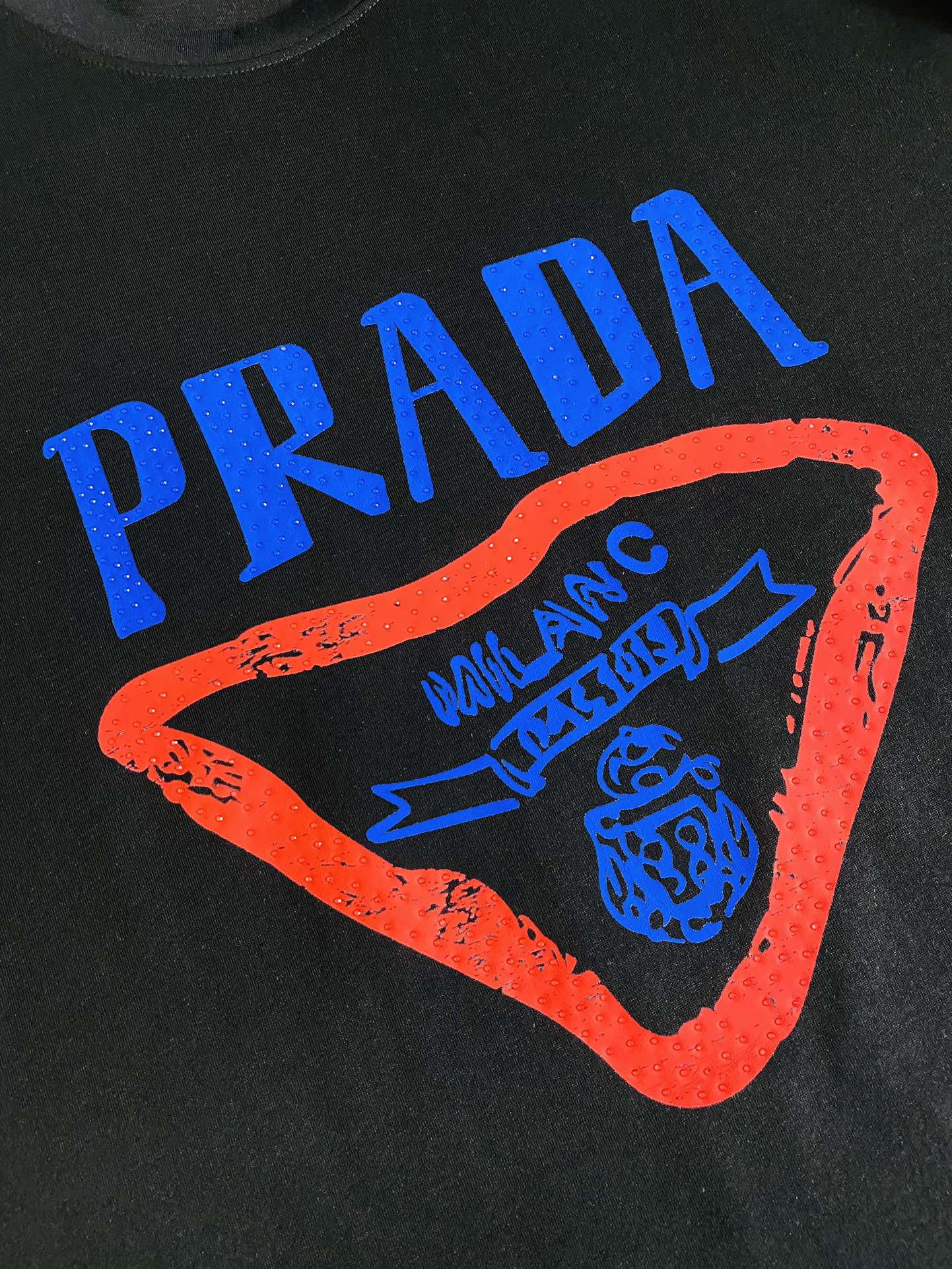 这款衣服是AAAAA 1:1 质量 (非常棒). 使用了和原版一模一样的材料. 商标部分也保持了和普拉达/Prada一样. 图片拍摄是实物衣服拍摄, 您所收到的实物保证和我们图片一模一样.
