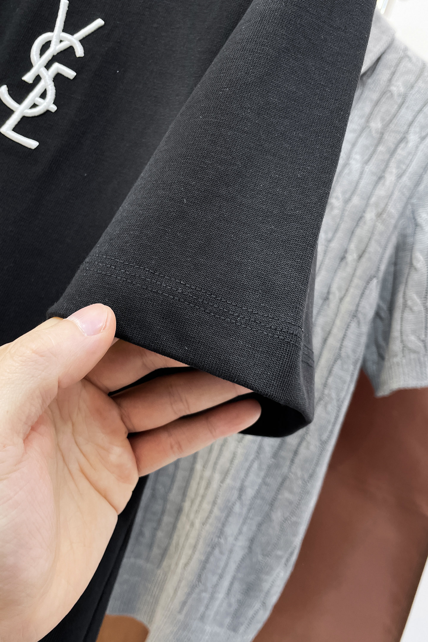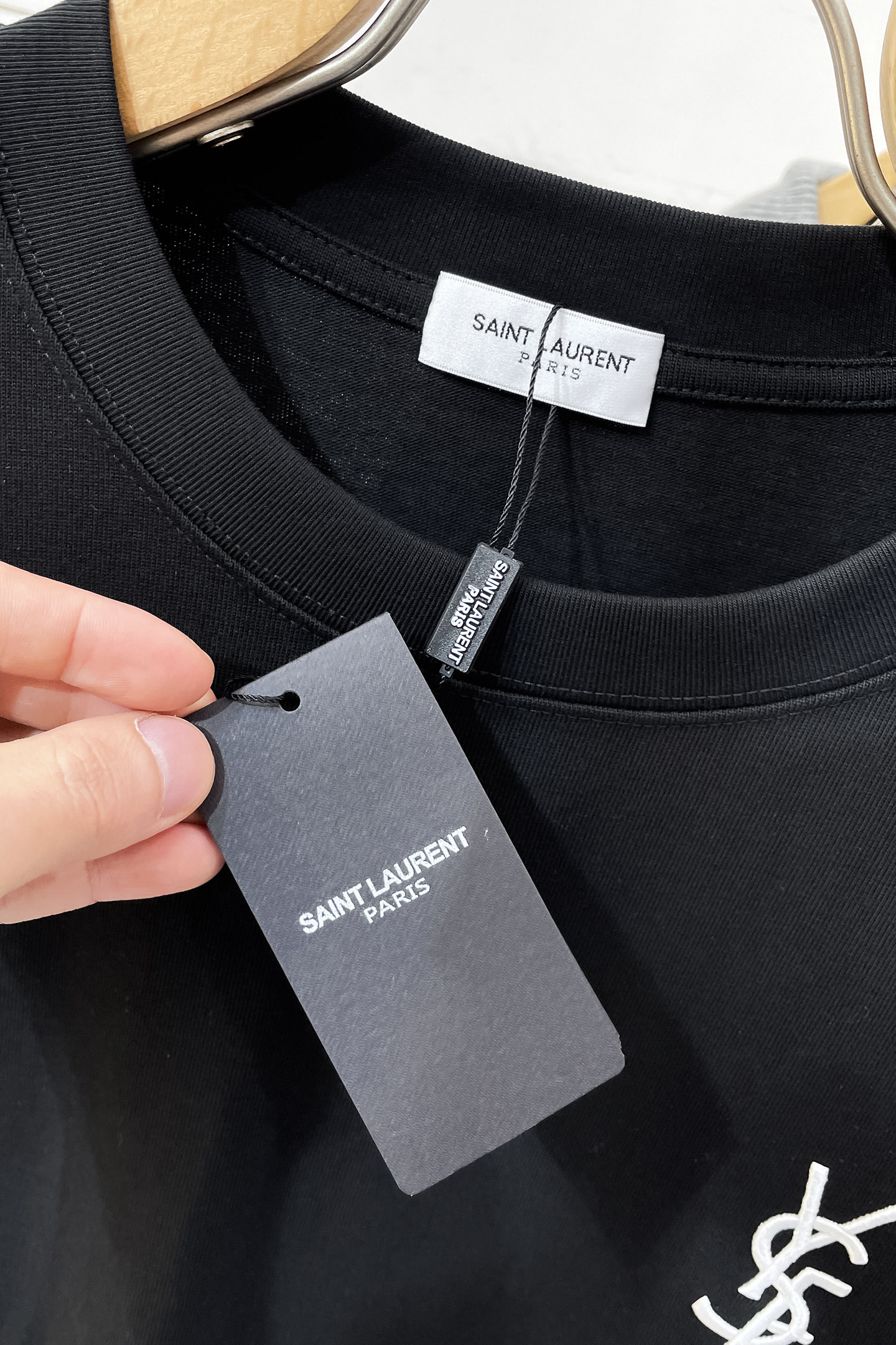 这款衣服是AAAAA 1:1 质量 (非常棒). 使用了和原版一模一样的材料. 商标部分也保持了和圣罗兰/Saint Laurent一样. 图片拍摄是实物衣服拍摄, 您所收到的实物保证和我们图片一模一样.