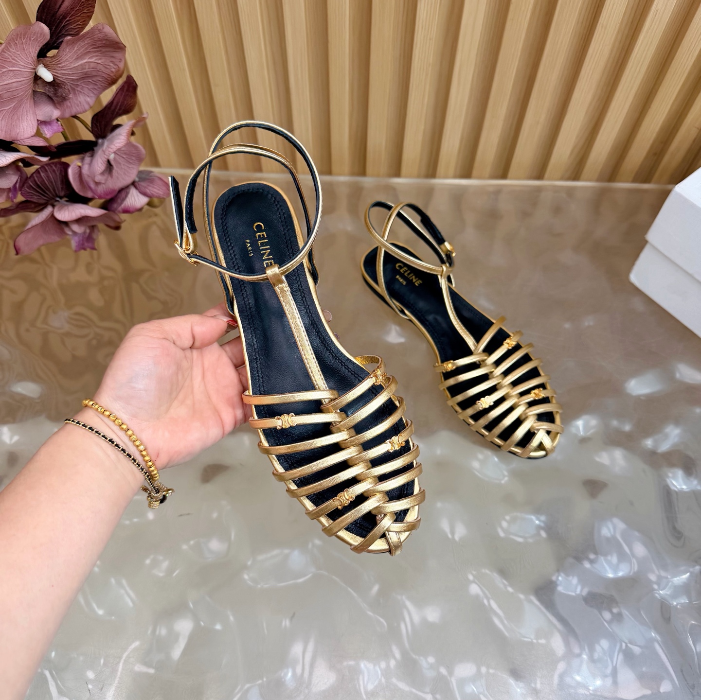 这款鞋子是AAAAA 1:1 质量 (非常棒). 使用了和原版一模一样的材料. 商标部分也保持了和思琳/Celine一样. 图片拍摄是实物鞋子拍摄, 您所收到的实物保证和我们图片一模一样.